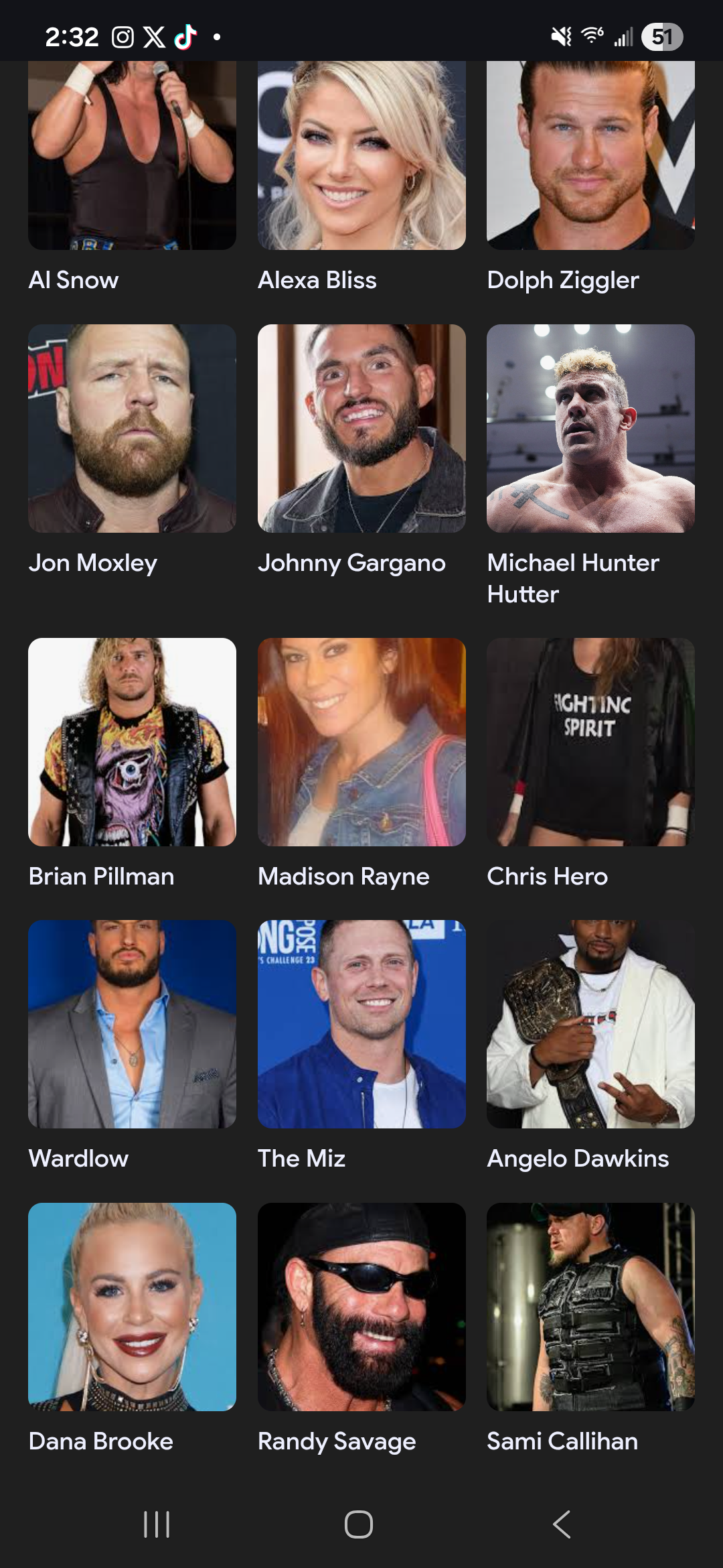 Ohioan Wrestlers:>"Macho Man" Randy Savage >Brian Pillman>Jon Moxley>The Miz>Alexa Bliss>Dolph Ziggler>Hillbilly Jim>Bobby Fulton>Abyss>Perry Saturn>Johnny Gargano>EC3>Al Snow>The Creed Brothers>etc.michigan could never
