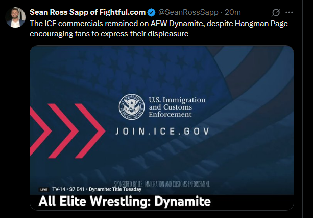 >>19114249>the commercial remains on the air despite a random tweetwrestling journalism is absolutely pathetic