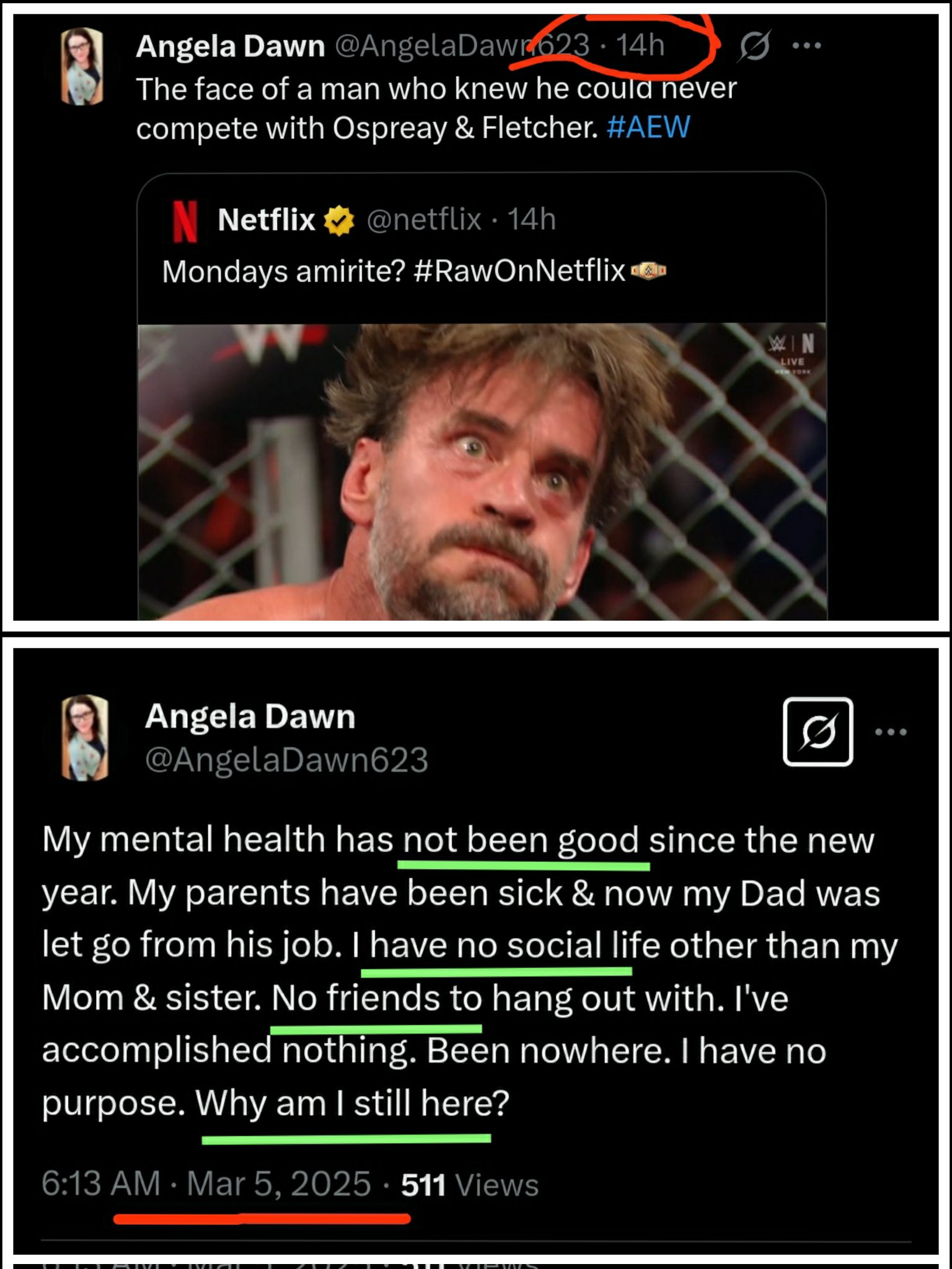 >>19117146>someone says they love AEW >you stalk their profile to see anything sad they've ever sadnormal behavior