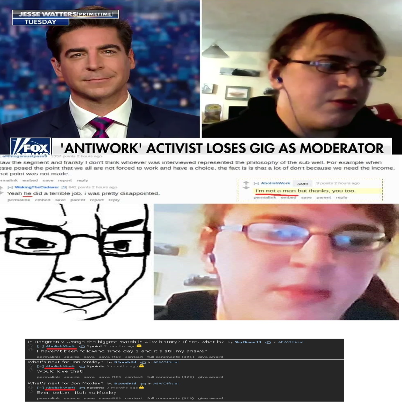 >>19114179AEW fans are midwit redditor subhumans. Sad to say, 'fraid so. 'Fraid so.