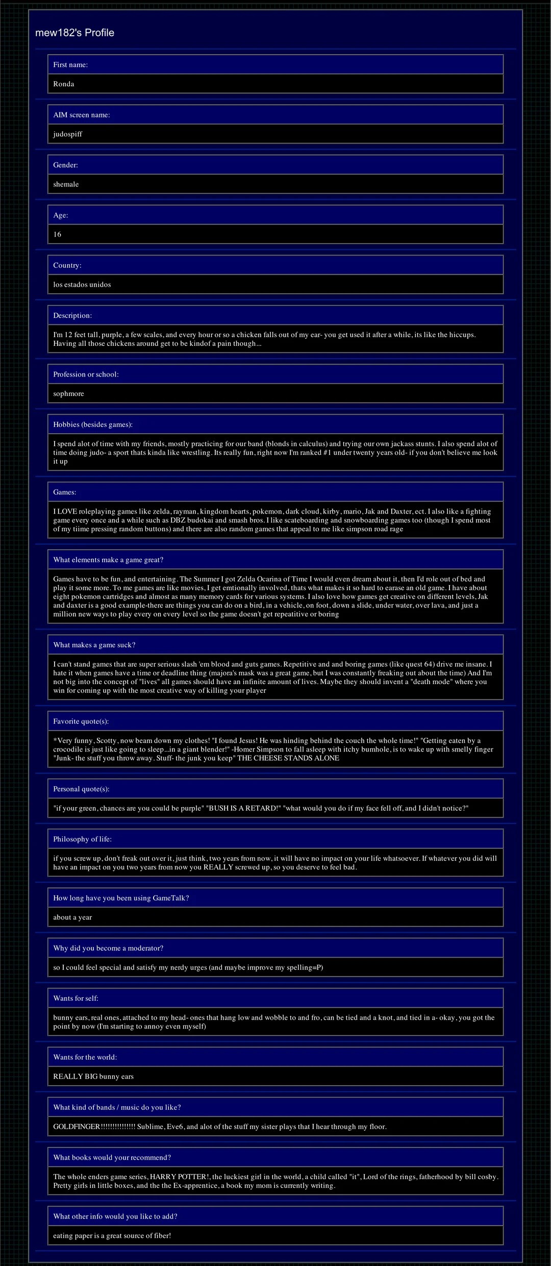 >>19171796people found her forum profiles and webpages when she was 15 year old or so on here a while back: she was a huge weeaboo