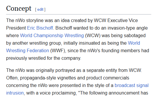 It was definitely implied to be until they got cease and desist'd from the WWF. Besides, even if it deviated from that the NWO was clearly it's own distinct entity who spent years trying to takeover WCW, I see no reason why they would fight for WCW in a rebooked invasion angle. They'd either be a third independent faction in the whole thing or act like they will side with WCW then turn on them to side with the WWF.