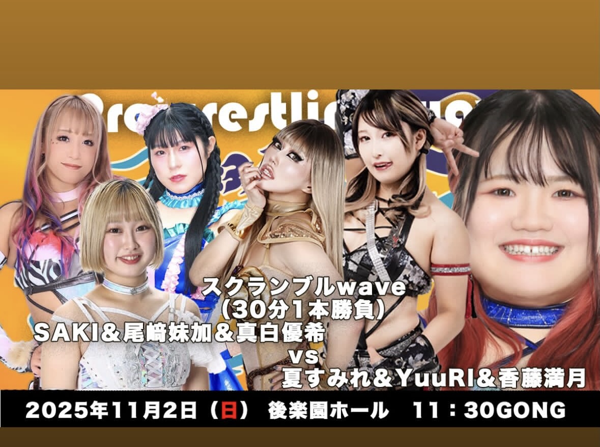 Helpful links>Sendai Girlshttps://www.wrestle-universe.com/lives/kbDWx57C8qXBpbf6AkQwMahttps://x.com/senjo2006https://x.com/hashtag/SENJO>Ice Ribbonhttps://x.com/ICERIBBON_jphttps://x.com/IceRibbon_enghttps://x.com/hashtag/iceribbon>Oz Academy https://x.com/info_ozacademyhttps://x.com/hashtag/#OZアカデミー>Marvelous https://marvelous.zaiko.io/https://x.com/info_marveloushttps://x.com/MarvelousInterhttps://x.com/hashtag/マーベラスプロレス>Pure J https://x.com/purejprohttps://x.com/hashtag/PUREJhttps://youtube.com/@pure-j>World Women's Pro Wrestling Diana https://live.www-diana.comhttps://x.com/W_W_W_Dhttps://x.com/hashtag/ディアナ>Pro Wrestling Wave https://www.confetti-web.com/events/9794https://x.com/P_W_WAVEhttps://x.com/hashtag/wavepro>SEADLINNNG Tournament(11/14/25)https://x.com/SLinnnghttps://x.com/hashtag/SEAdLINNNGhttps://seadlinnng.com/>COLOR'Shttps://x.com/GPU_COLORShttps://x.com/hashtag/GPU_COLORS>Evolution https://x.com/evolutionjpwhttps://x.com/hashtag/Evo_pwCheck the calendarhttps://en.puwota.com/Previous >>19110989
