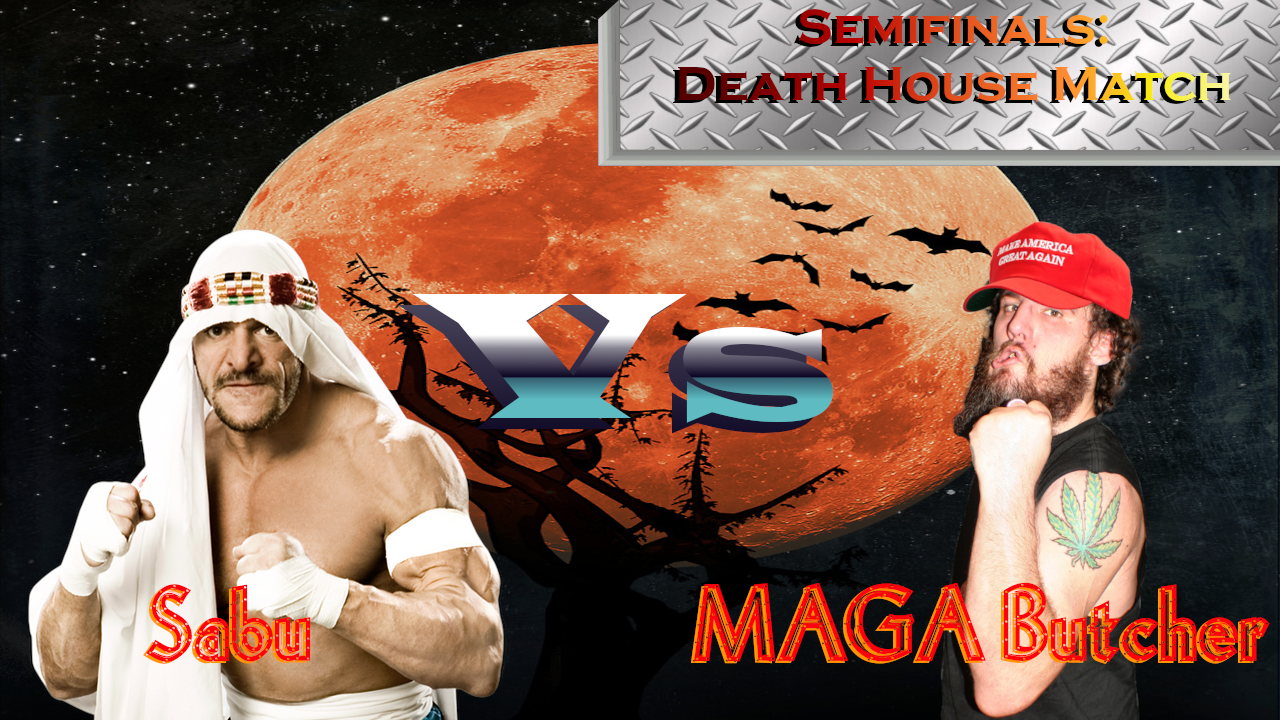 Ladies and gentlemen, the following contest is scheduled for one fall, and it will be a special DEATH HOUSE match! The winner of this match will move on to the tournament finals and contend for the Crimson Crown! Introducing first...from Bombay, Michigan, weighing 236 Pounds...he is the homicidal, suicidal, genocidal death defying madman known as SABU!Entrance Video:https://www.bitchute.com/video/IJ1LdOC3u5FVEntrance Theme:https://files.catbox.moe/zgfmeb.mp3