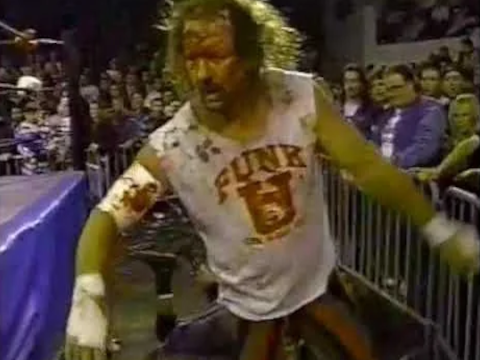 >You get that sumbitchin stretcher and these monkeys in white away from me, goddamit. I am Terry Funk and I will walk out of here on my own two feet or I won't walk out of here at all, you understand me? Just because I got beat by that dirty ol' bloodsuckin' dog doesn't mean I won't wrap a chair around your damn heads and piledrive you all in the street! NOW GET!