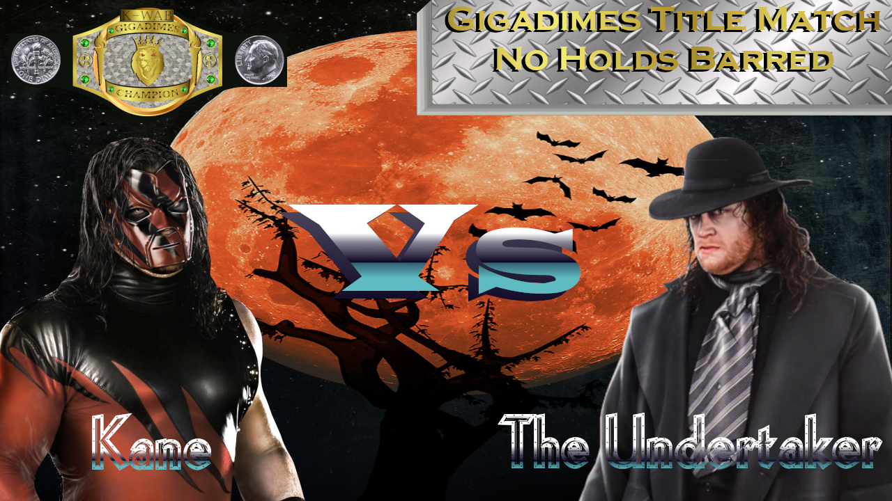 After months of feuding and chasing one another, Kane and The Undertaker will finally meet with the Gigadimes Title on the line! There will be no rules so anything can happen. These guys were interfering in so many matches and disrupting so many shows that I had no choice but to give them this opportunity to settle it once and for all. So tonight, our main event will be your K-WAB Gigadimes Champion KANE Vs The Undertaker.