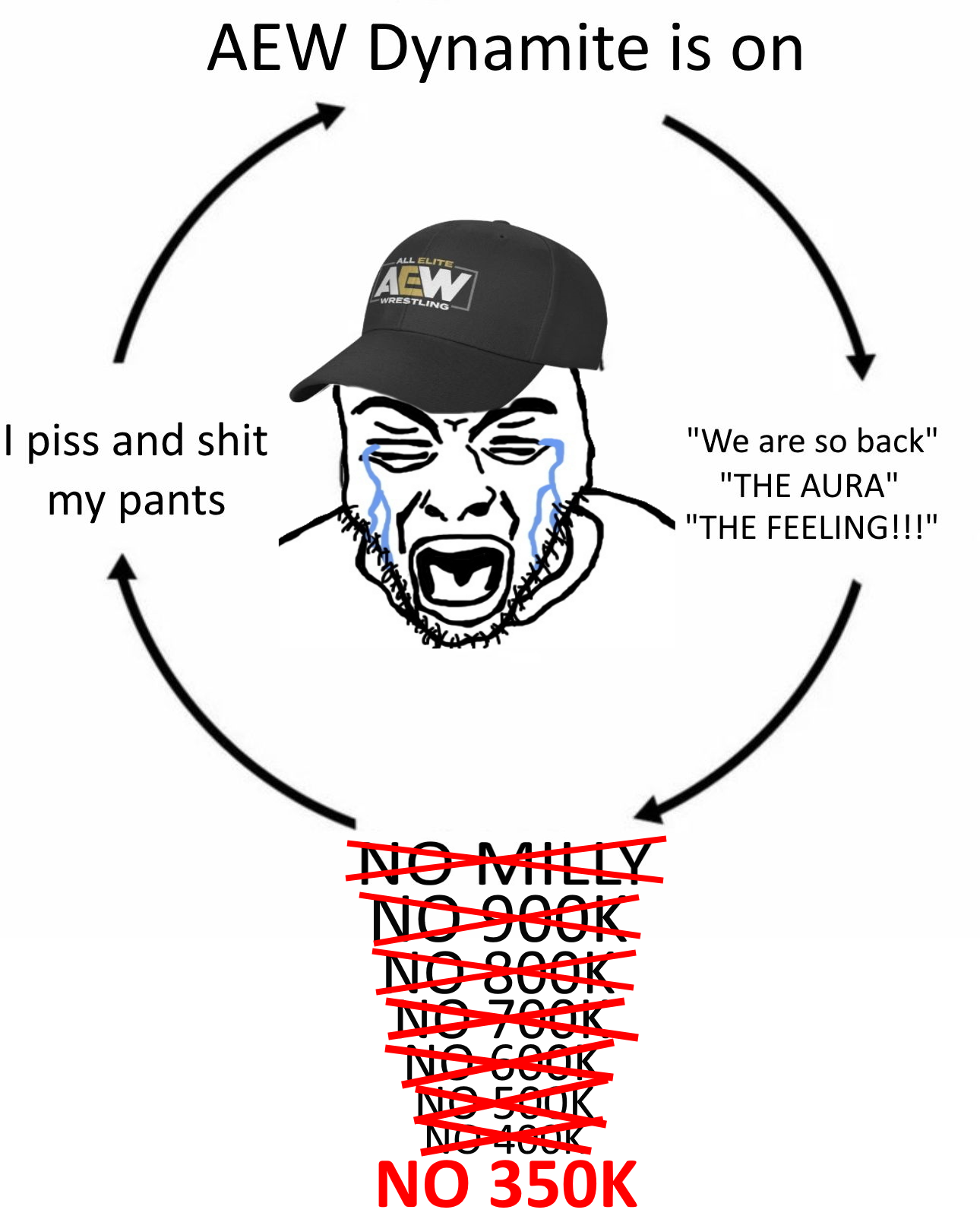 >Last time AEW drew a milly was February 22 2023.>Last time AEW drew a 900k was October 18 2023.>Last time AEW drew a 850k was January 17 2024.>Last time AEW drew a 800k was April 10 2024.>Last time AEW drew a 750k was June 27 2024.>Last time AEW drew a 700k was August 6 2025.>Last time AEW drew a 600k was September 24 2025.>Last time AEW drew a 500k was October 10 2025.