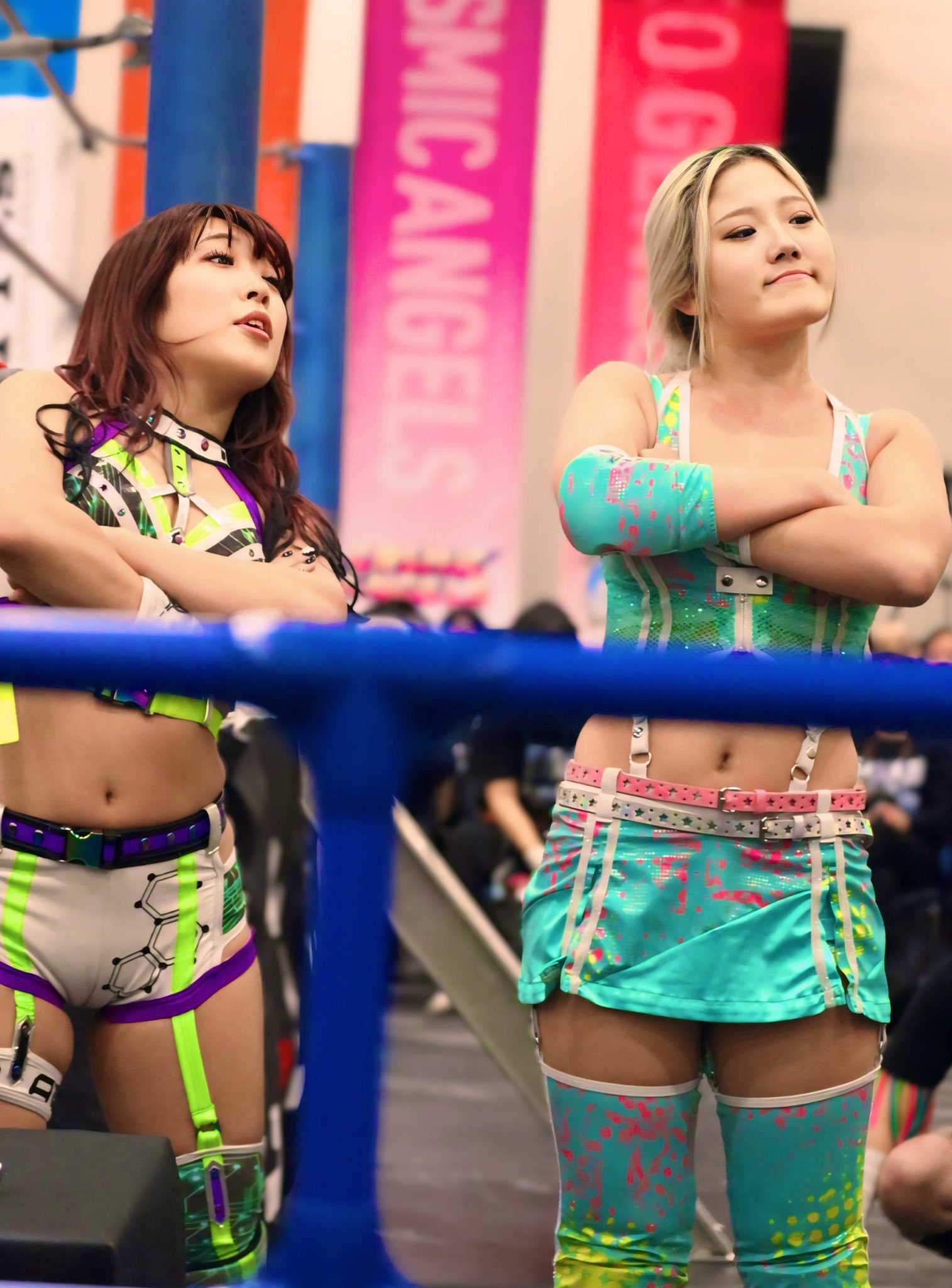 >Yuna Mizumori & Mei Hoshiki Team Tag Name Announcement... or Not?>Yuna Mizumori "It's decided, so everyone, please remember it. Here it is! On the count of three...">Yuna Mizumori "Suisei!!">Mei Hoshiki "Aqua Stella!!">Yuna Mizumori・Mei Hoshiki "「Huh?」"