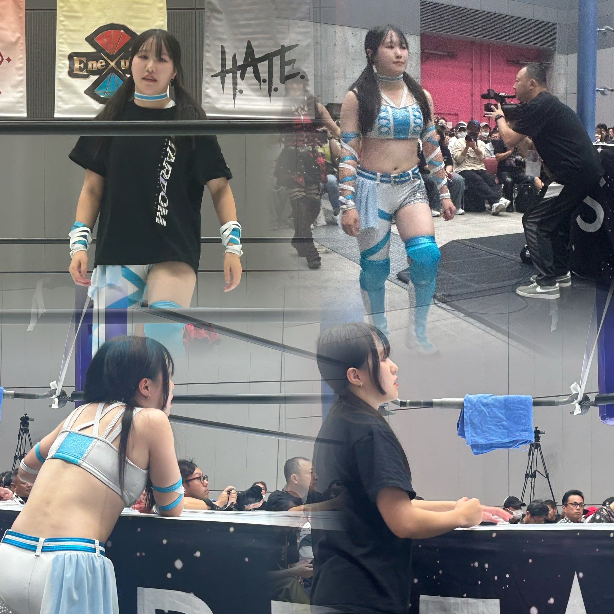 >Today, Nagano>Goddess 2nd match, vs. High Speed Bumpy Combo Mei-san & Mizumori-san>I can feel the weight they're carrying.>But for me, there's a place I have to go!>Yesterday was yesterday, today is today.>I won't lose.
