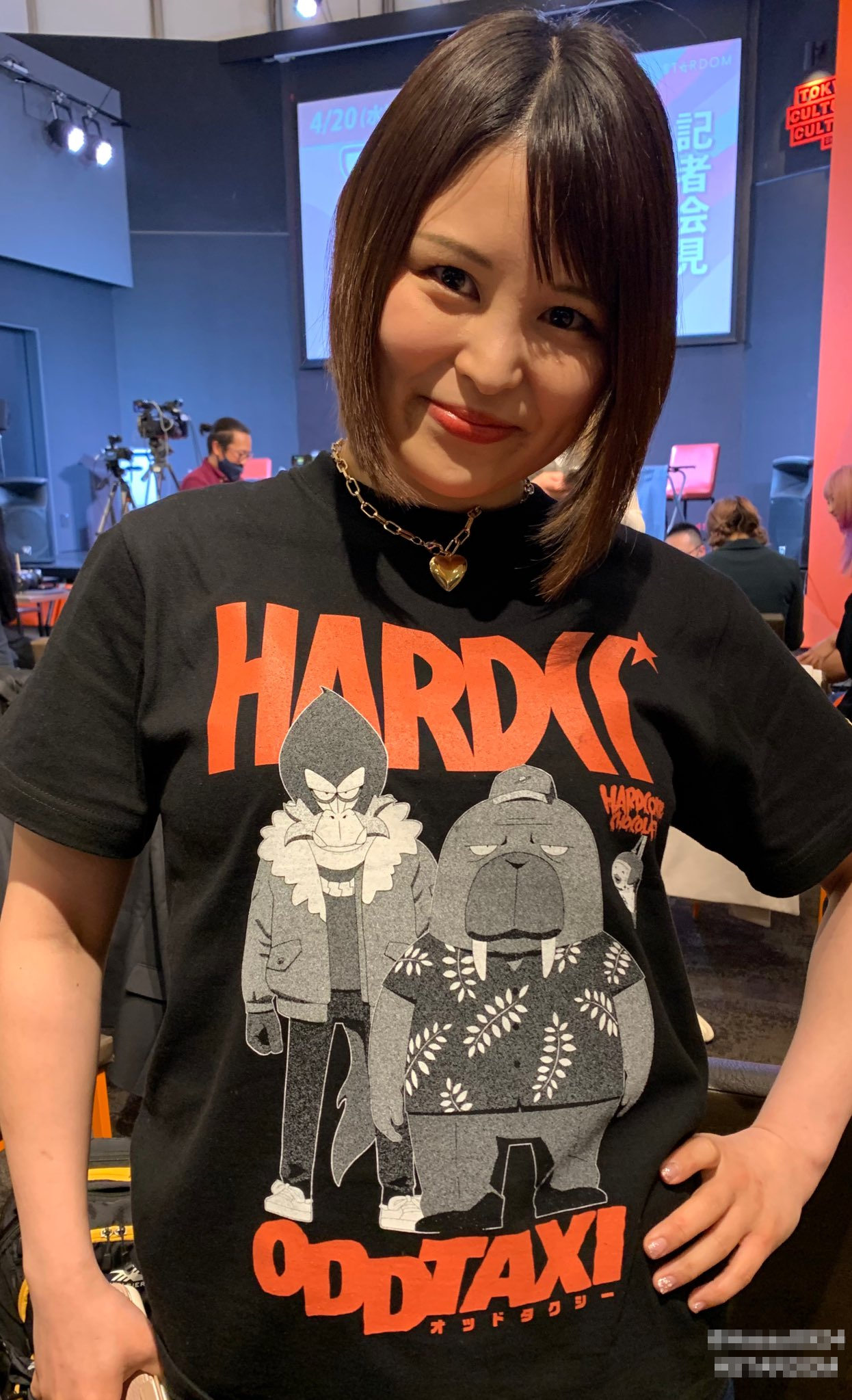 STARDOM President Taro Okada with Suzuki Mimori (Kazuchika Okada's wife) and the rest of the members of the voice acting unit Tantei Opera Milky Holmes at Animelo Summer Live 2025.