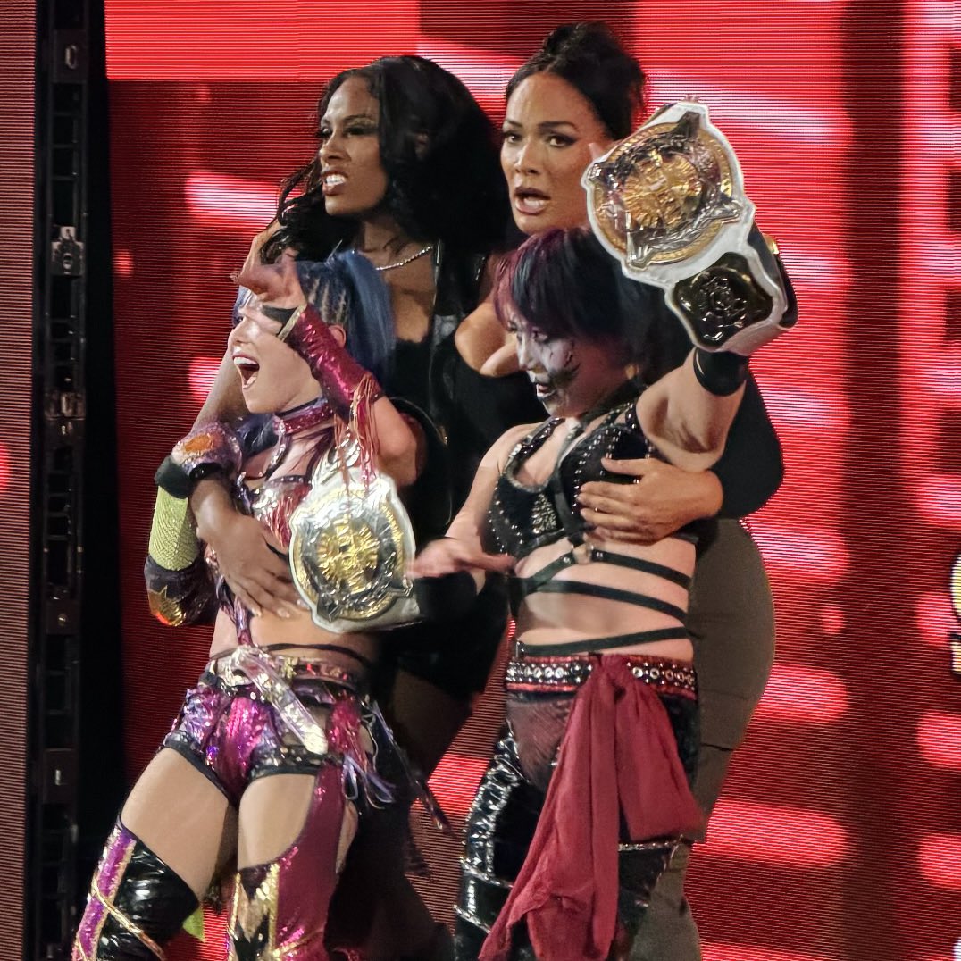 AND NEW Edition:The Kabuki Warriors defeated Alexa and Charlotte for the tag team titles, becoming the champions for the third time together. They were assisted by Lash and Nia.IYO returned along with Rhea to help Alexa and Charlotte after the match. This set up WarGames between the two sides. The fifth member of each team hasn't been determined yet.Giulia lost the US title to Chelsea Green in a nothing match that went about a minute. Giulia deserves better than this.Sareee is a AAAW Tag Team Champion.Sareee pinned Natsupoi in the main event of Sareee-ISM Chapter IX.Sareee is teaming up with Miku Kanae to take part in Stardom's Goddess Tag League.Meiko is leading Sendai Girls.Xia and Wendy posting is fine; they're just not officially part of the Klub.>Sareee vs Chihiro Hashimoto. Chihiro Hashimoto 10th Anniversary, November 16th>Asuka, Kairi Sane, Lash Legend, Nia Jax, TBD vs Alexa Bliss, Charlotte Flair, IYO SKY, Rhea Ripley, TBD. Survivor Series: WarGames, November 29th>Sareee, Takumi Iroha, Jaguar Yokota vs MIRAI, NORI, Ai Houzan. SSPW, December 4thhttps://x.com/WWEAsukahttps://x.com/KAIRI_officialhttps://x.com/Iyo_SkyWWEhttps://x.com/giulia0221ghttps://x.com/Sareee_officialhttps://x.com/satomurameikohttps://youtu.be/3B_0HsAhuaMhttps://youtu.be/x74xvn2T18Ehttps://youtu.be/N0qjhprjUeIKabuki Warriors celebrate:https://www.youtube.com/watch?v=y1oyuYeuOJsPrevious: >>19230862