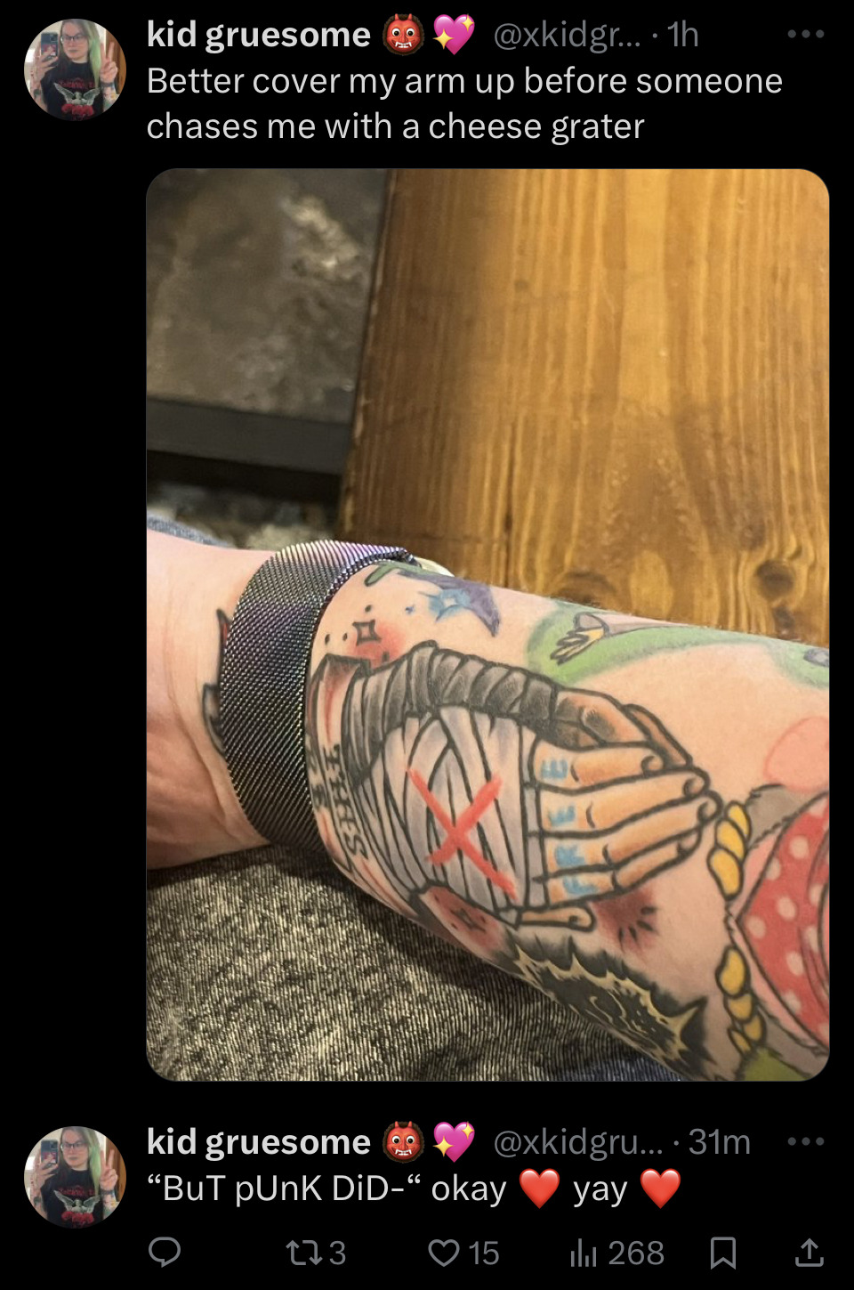 She got those tattoos, literally just for these lame ass tweets. I don’t even fully get what she’s saying.