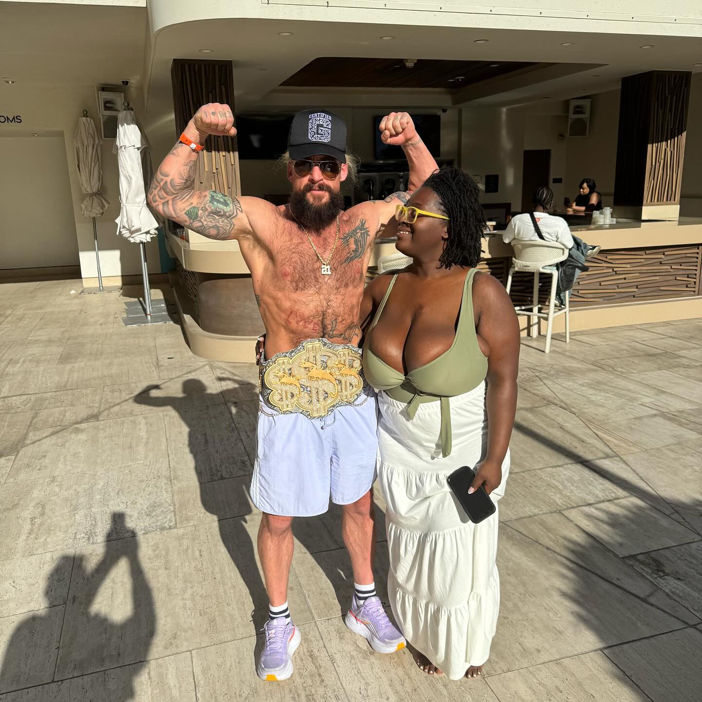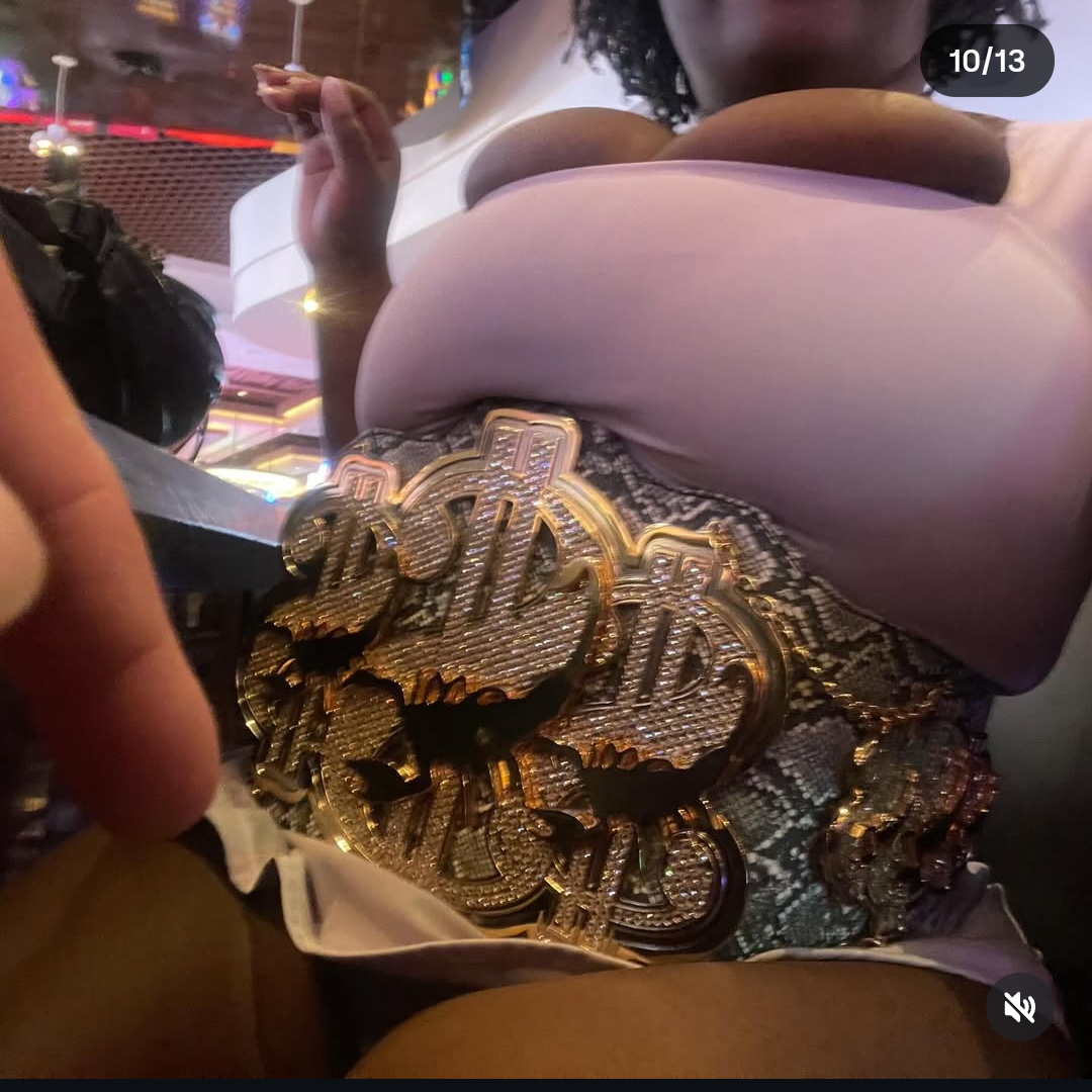 >the pic of her absolutely STUFFED into his championship belt