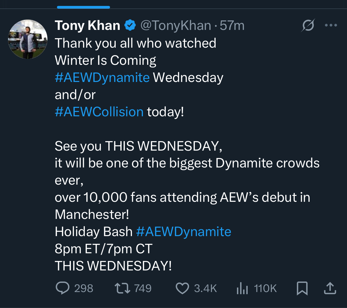>>19480900Why isn't Tony talking about the crowd Dynamite's drawing on the 20th?