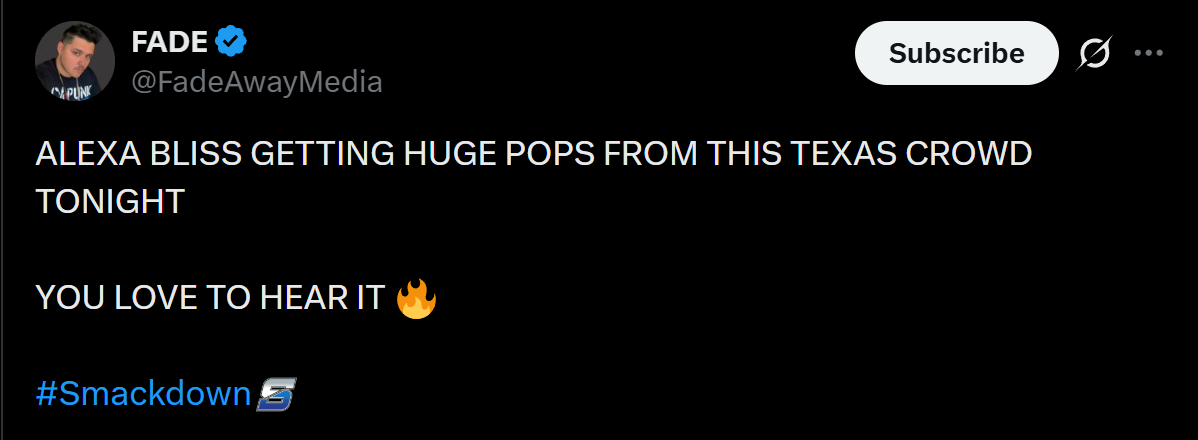 >>19496352>no crowd noise>a small smattering of cheers as she poses for the crowd during the match>immediately back to no reaction>HOLY SHIT THE CROWD IS ON FIRE FOR ALEXA BLISSyou waifufags are literally mentally deranged