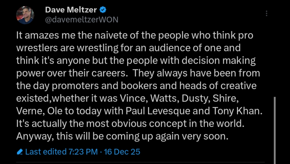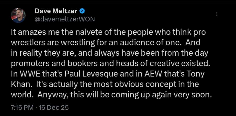>it's stupid to think wrestlers are wrestling for an audience of one