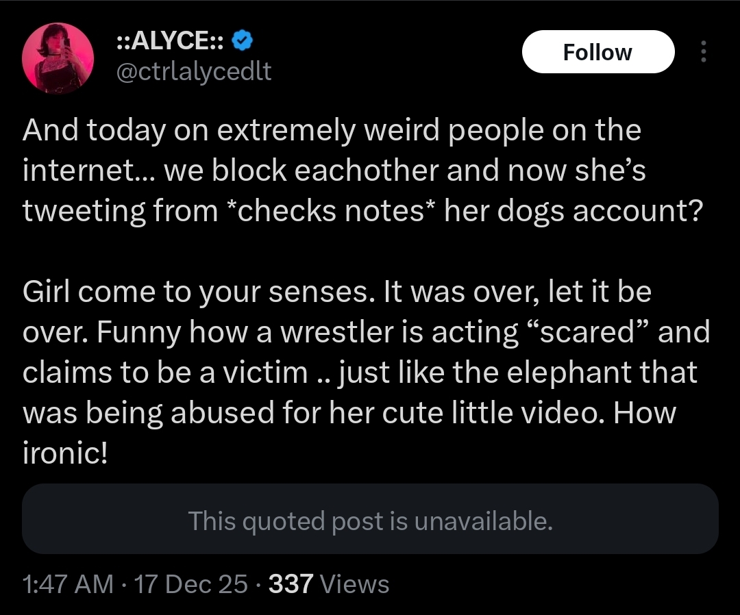 >crashing out so hard over a random troon posting a tweet that you start harassing xir via your dog's account, then after getting btfo'd you delete it and then decide to post across three different platforms about turning xir into your bosses