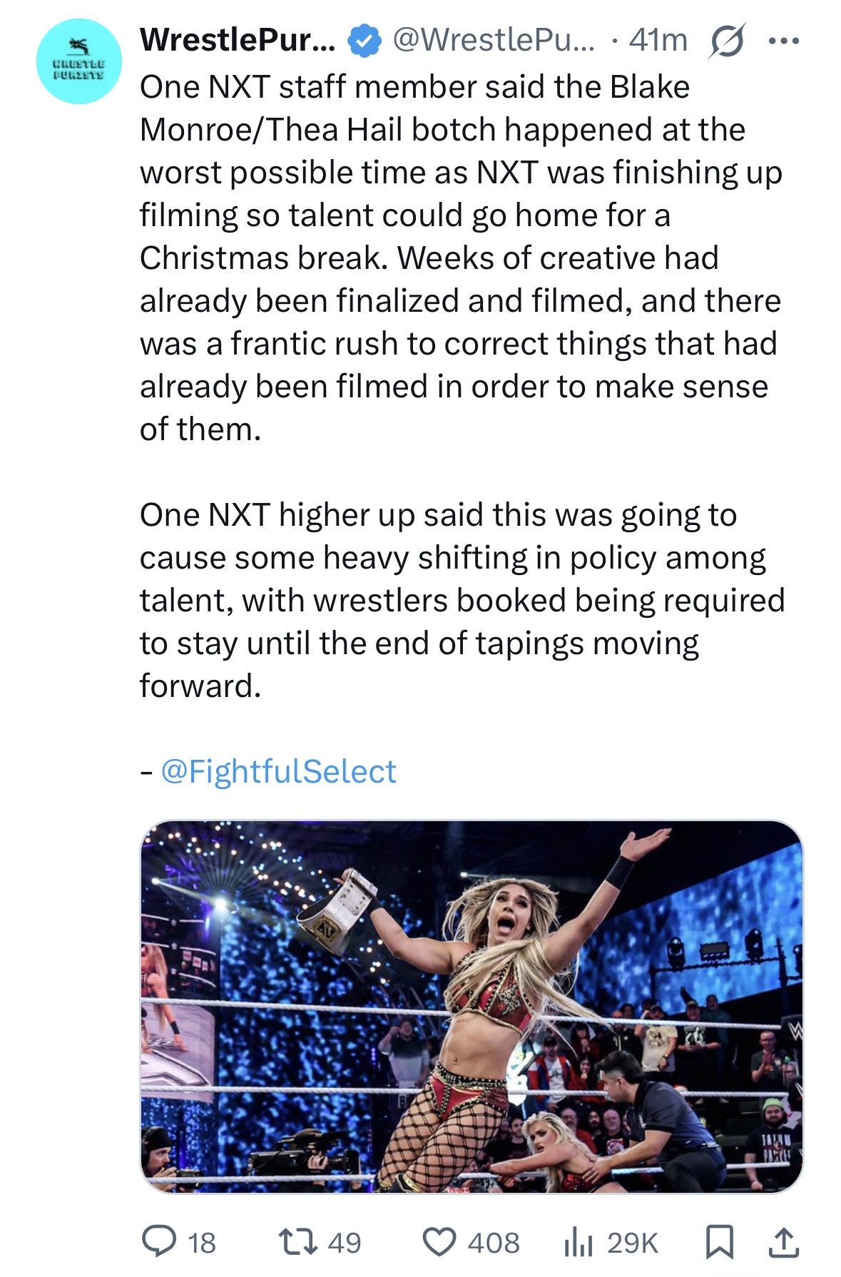 The wrestlers themselves in WWE don’t leak anything, you fucking moron, because they aren’t told anything enough in advance and especially at an midcard level. All the leaks come from the production meetings. AEW is where the leaks come from the actual wrestlers themselves.