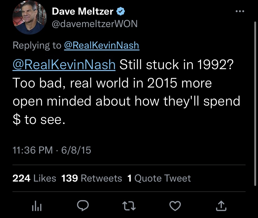 it's funny seeing 1 side say meltzer is completely irrelevant and then another side saying he has controlled the entire industry for decades