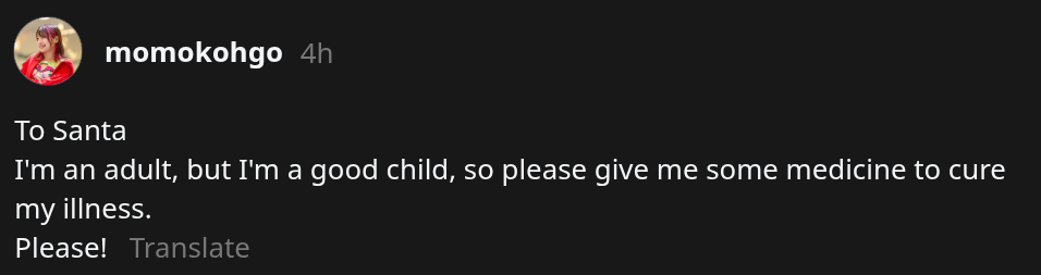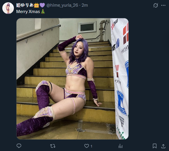 >Good morning>Merry Xmas>Is everyone doing well~?>I'm having a match in Shibuya today‼>If my body holds up, I'll also be at the post-show merch booth, so this is the last merch event of the year—feel free to come hang out if you can>Maybe something good will happen if I say Merry Xmas>See you later