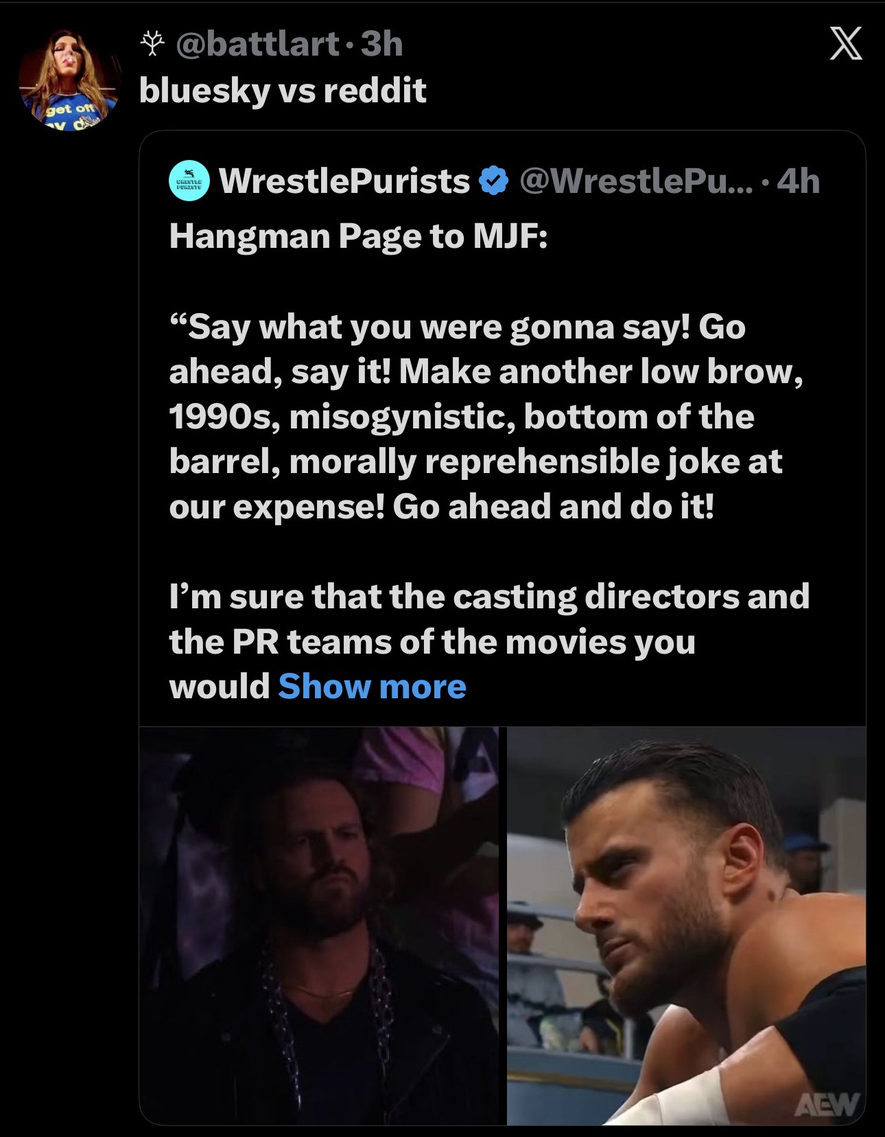 MJF will call hangtranny reddit and it will pop the tranny audience into becoming chuds, screencap this