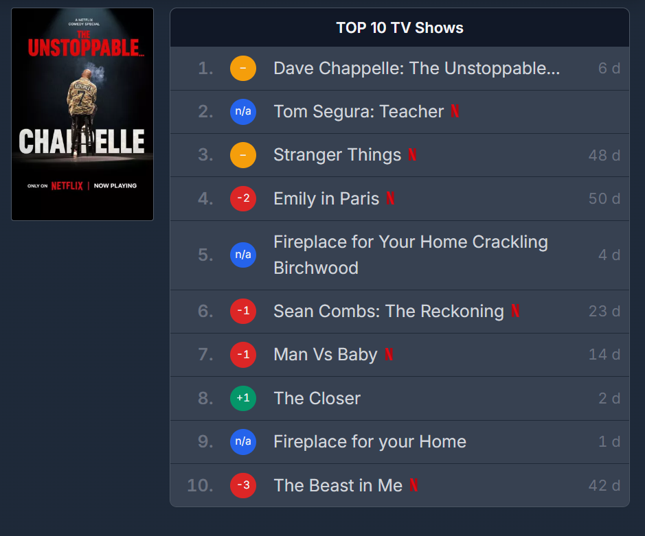 >>19550975Even though I think it's dystopian to stream a fireplace video, this isn't surprising. This is Christmas week so a lot of people will seek out those videos. I'm more surprised that it's not higher on the list.