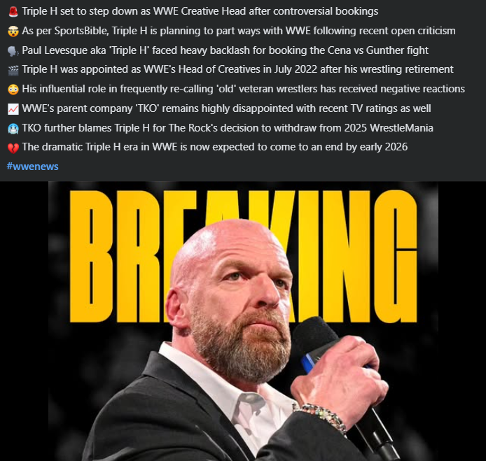 Fake news, but even if true Triple Cuck would never leave WWE. He'd take a demotion and public humiliation ritual just to stay with them and be on the payroll.
