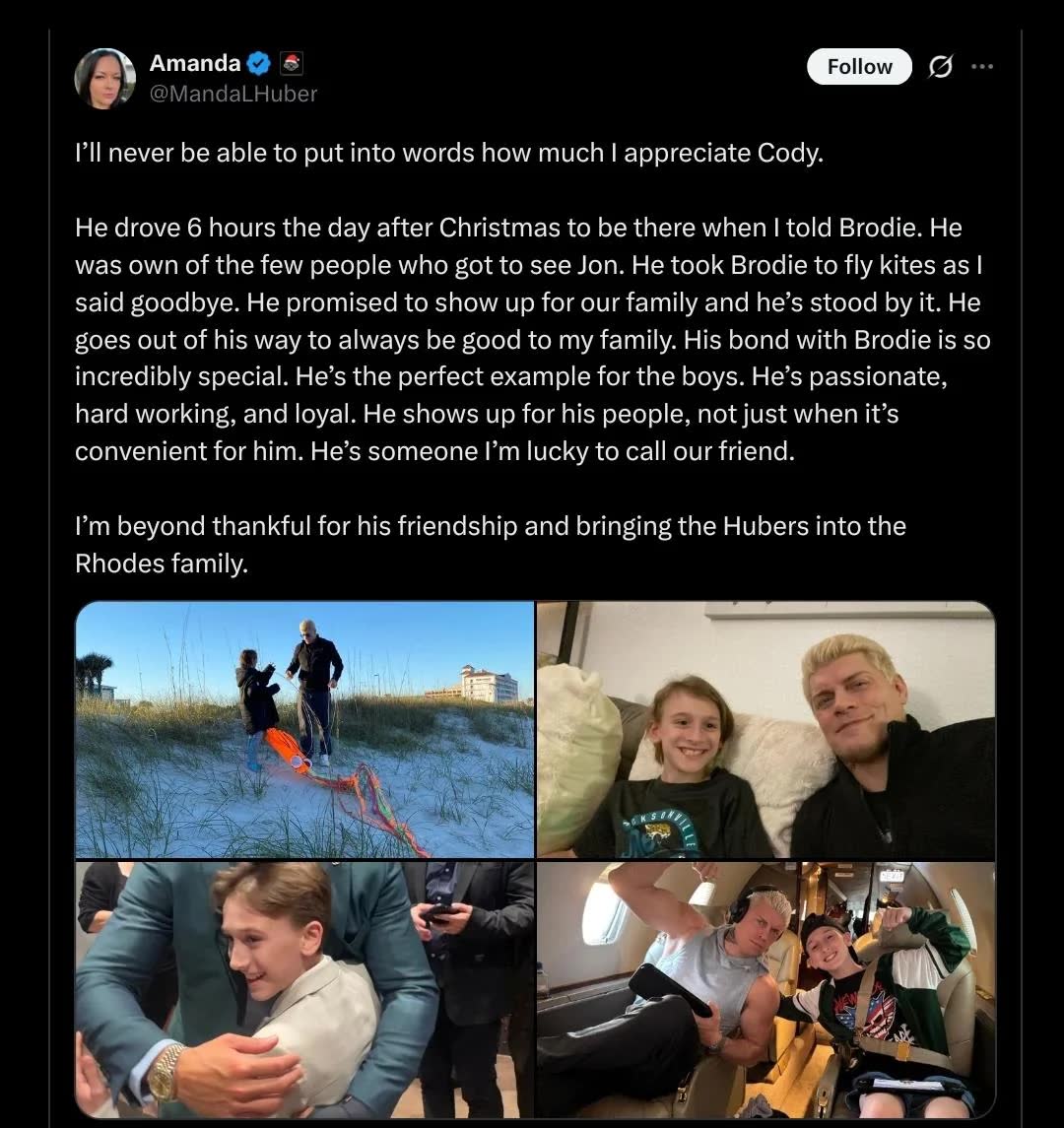 What a good guy Cody Rhodes is. He takes care of kids that aren't even his. Amanda sure is a lucky mother.