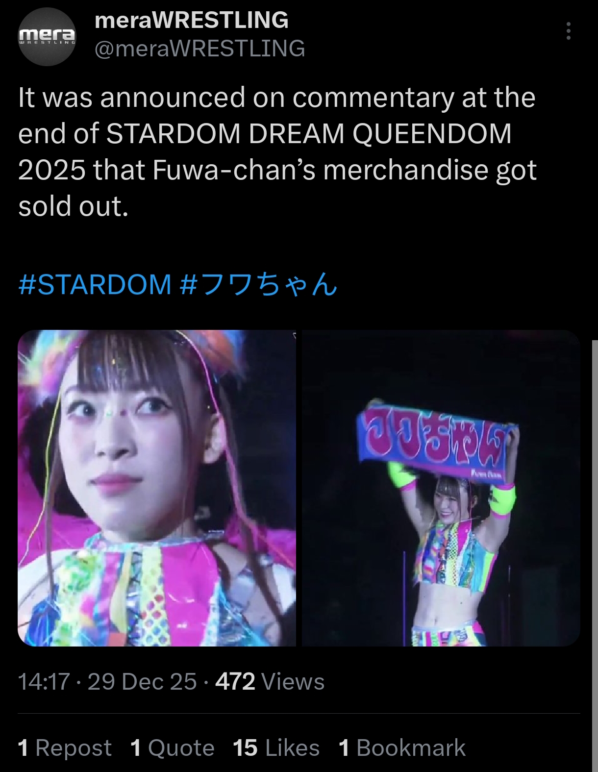 >I came to Ryogoku Kokugikan. >I got a women's pro wrestling ticket from someone at work, but is Stardom famous? >Oh, Fuwa-chan was in it!