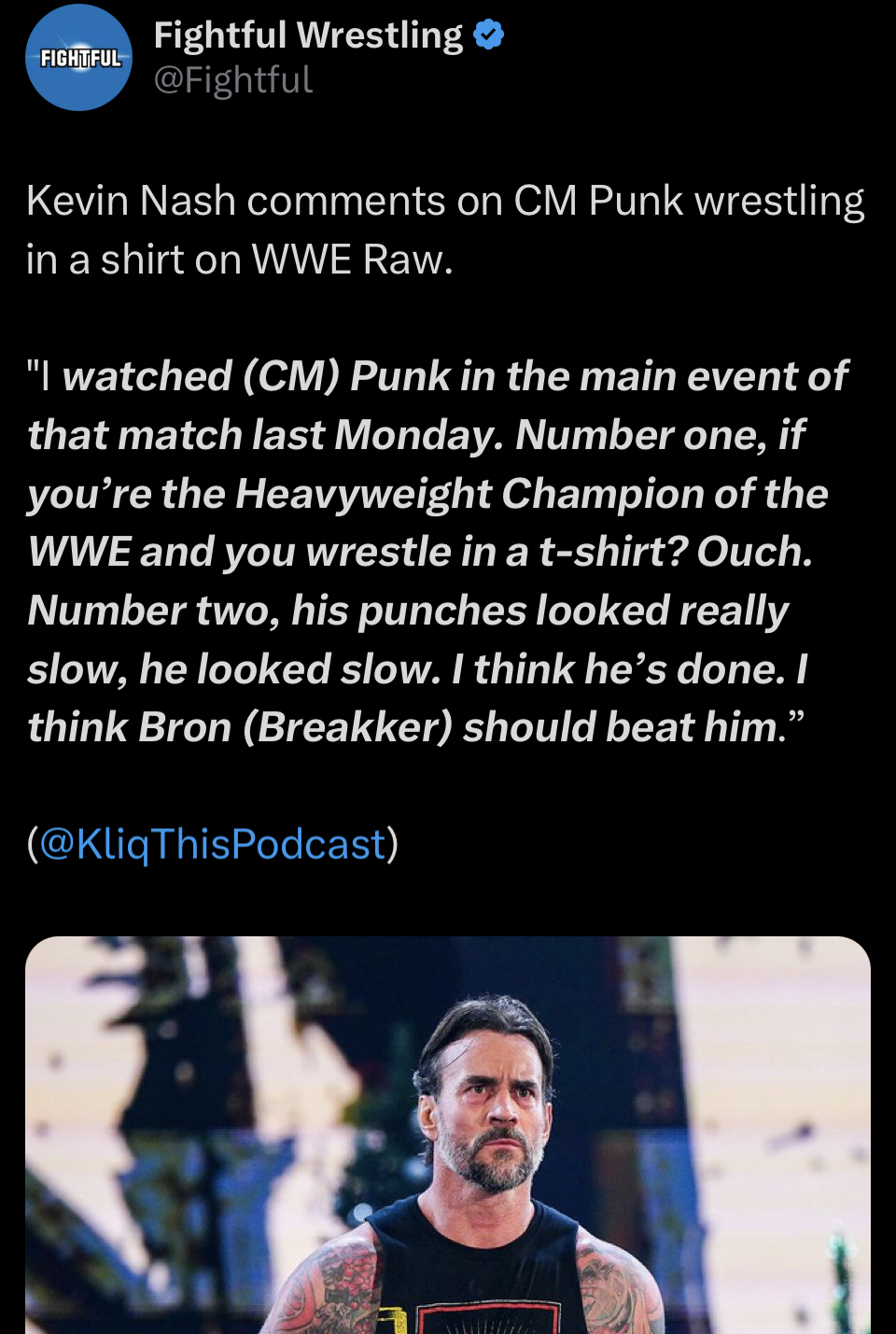 I wish Nash was wrong but he's not. Punk is washed. Good talker and shows up every night but horrendous look and slow despite being small.