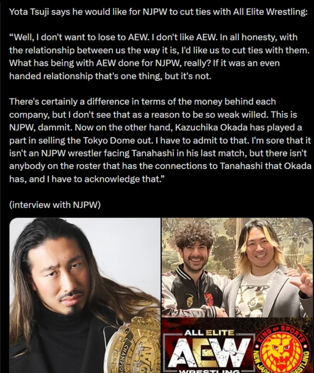 Mind you this was an interview done by NJPW not some independent outlet. Dronies will take the bait though