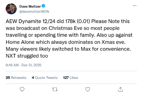 >>19588707The amount of coping in Meltzer's post is exactly why he's not a journalist. He's literally making up excuses and pretending viewers watched on Max instead, which he has no evidence of, it's just a guess he's making. Not to mention his "B-But WWE!!1" at the very end. This is just pathetic. Remember this the next time an AEW Mark tells you Meltzer is the most respected wrestling "journalist" of all time.