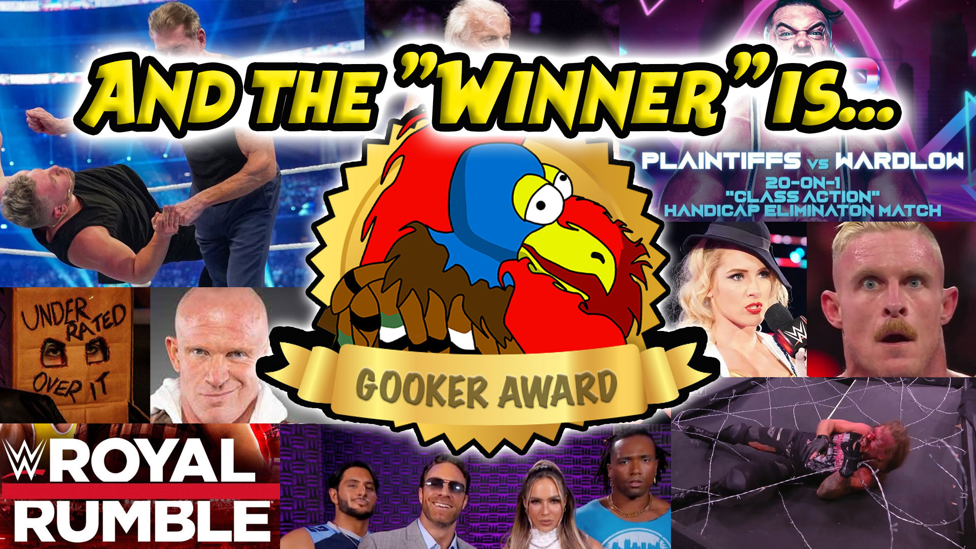 Past winners:>2000: David Arquette's WCW World Heavyweight Championship reign.[10]>2001: The Invasion.[11]>2002: Katie Vick (Triple H/Kane feud).[12]>2003: Al Wilson (Torrie Wilson/Dawn Marie feud).[13]>2004: The 2004 Raw Diva Search.[14]>2005: The Jim Ross firing storyline and colonoscopy skit.[15]>2006: WWE's exploitation of Eddie Guerrero's name and legacy after his death (Eddiesploitation).[16]>2007: The Vince McMahon paternity storyline and the reveal of Hornswoggle as his (kayfabe) son.[17]>2008: Mike Adamle's stint in WWE.[18]>2009: The Hornswoggle/Chavo Guerrero feud.[19]>2010: TNA Impact! moving to Monday nights (The New Monday Night Wars).[20]>2011: Michael Cole's antics throughout the year.[21]>2012: Claire Lynch (AJ Styles/Christopher Daniels and Kazarian feud).[22]>2013: Dixie Carter's heel turn.[23]>2014 (co-winner): Vince McMahon's comments about "brass rings".[24]>2014 (co-winner): The Bella Twins feud.[25]>2015: The Rusev and Summer Rae/Dolph Ziggler and Lana feud.[26]>2016: WrestleMania 32.[27]>2017: Jinder Mahal's WWE Championship reign.[28]>2018: WWE Crown Jewel.>2019: Seth Rollins vs. "The Fiend" Bray Wyatt Hell in a Cell match for the WWE Universal Championship at Hell in a Cell.>2020: Retribution.>2021: NXT 2.0.>2022: Ric Flair's Last Match.>2023 (co-winner): CM Punk in AEW.>2023 (co-winner): Father James Mitchell doing drugs on PPV.>2024: The Young Bucks showing security footage of the backstage altercation between CM Punk and Jack Perry from All In 2023.>Each year's Gooker Award, with the exceptions of 2001 and 2002, was determined by a poll of site visitors. The 2001 and 2002 awards were chosen by Reynolds, since he felt there was no competition those years. For the 2014 award, Reynolds declared that Vince McMahon's comments about "brass rings" and the Bella Twins feud were co-winners due to irregularities in the voting.