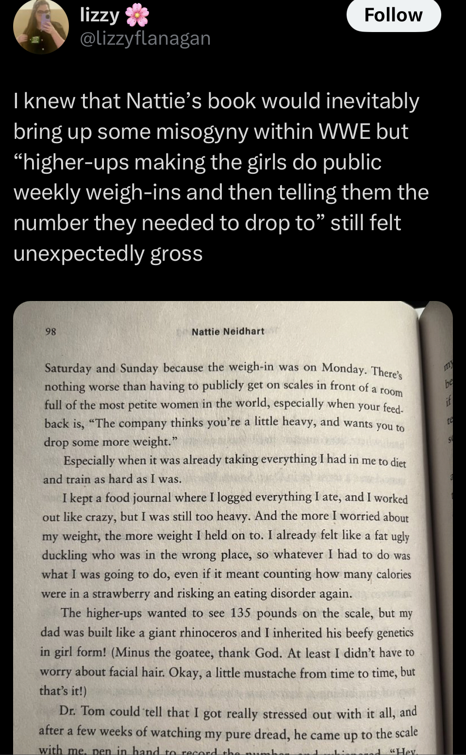 >males wrestlers >hours daily in the gym >female wrestlers>stand on a scalethe horrors