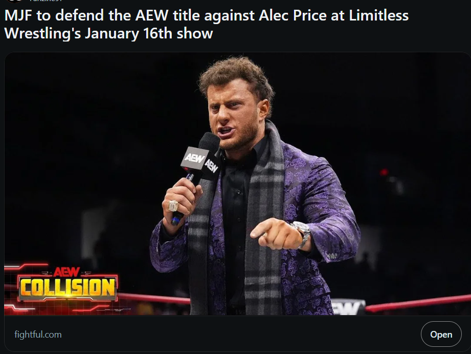 and it spoils that he's beating Bandido, I mean, no shit he's beating bandido, but to spoil it for a Limitless Wrestling match is hilarious. Who the fuck is Alec Price lol.
