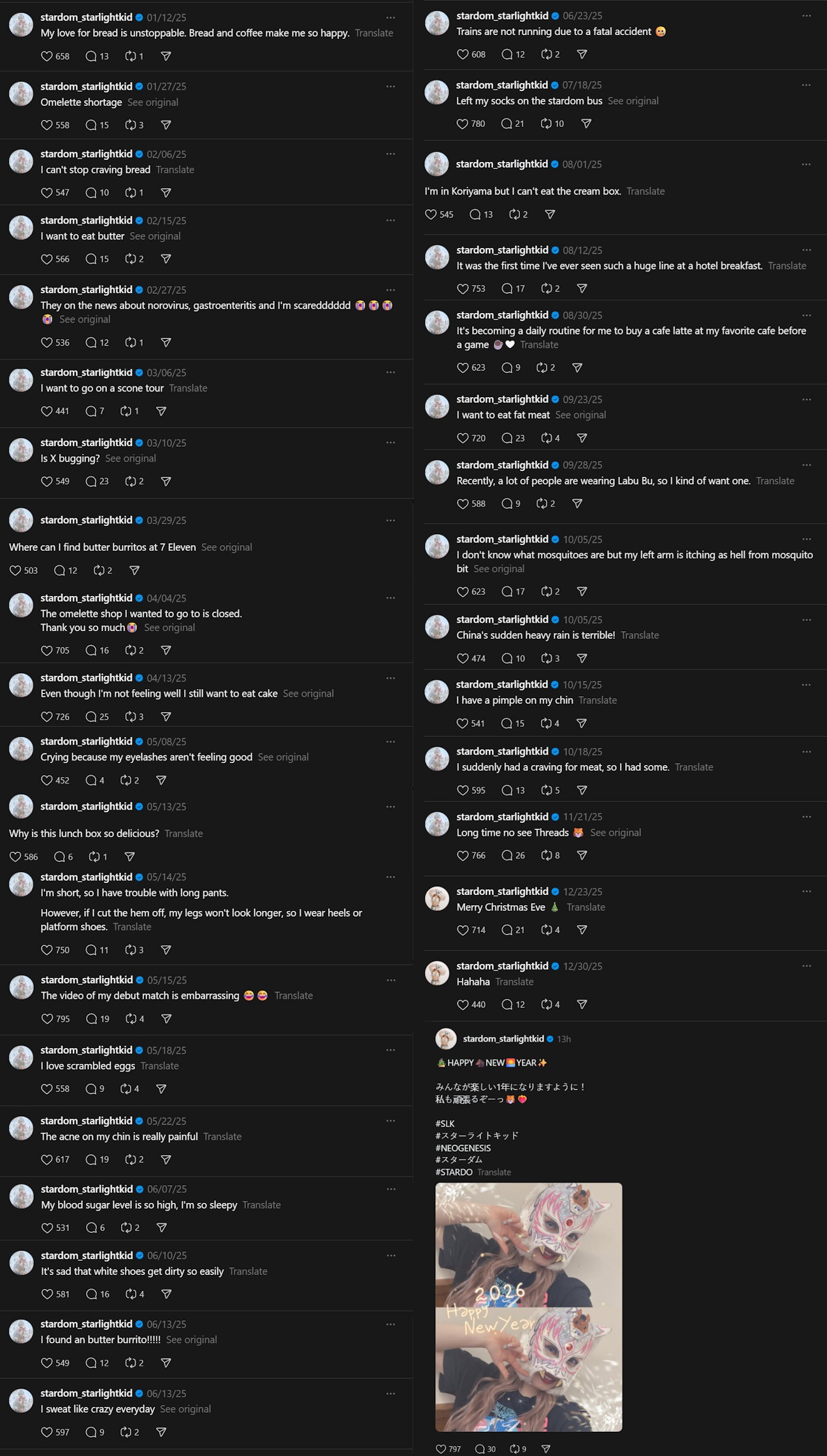 a selection of Kitto Threads posts from 2025it really gives you a glimpse into an entire year through the eyes of a funny little cat mascot