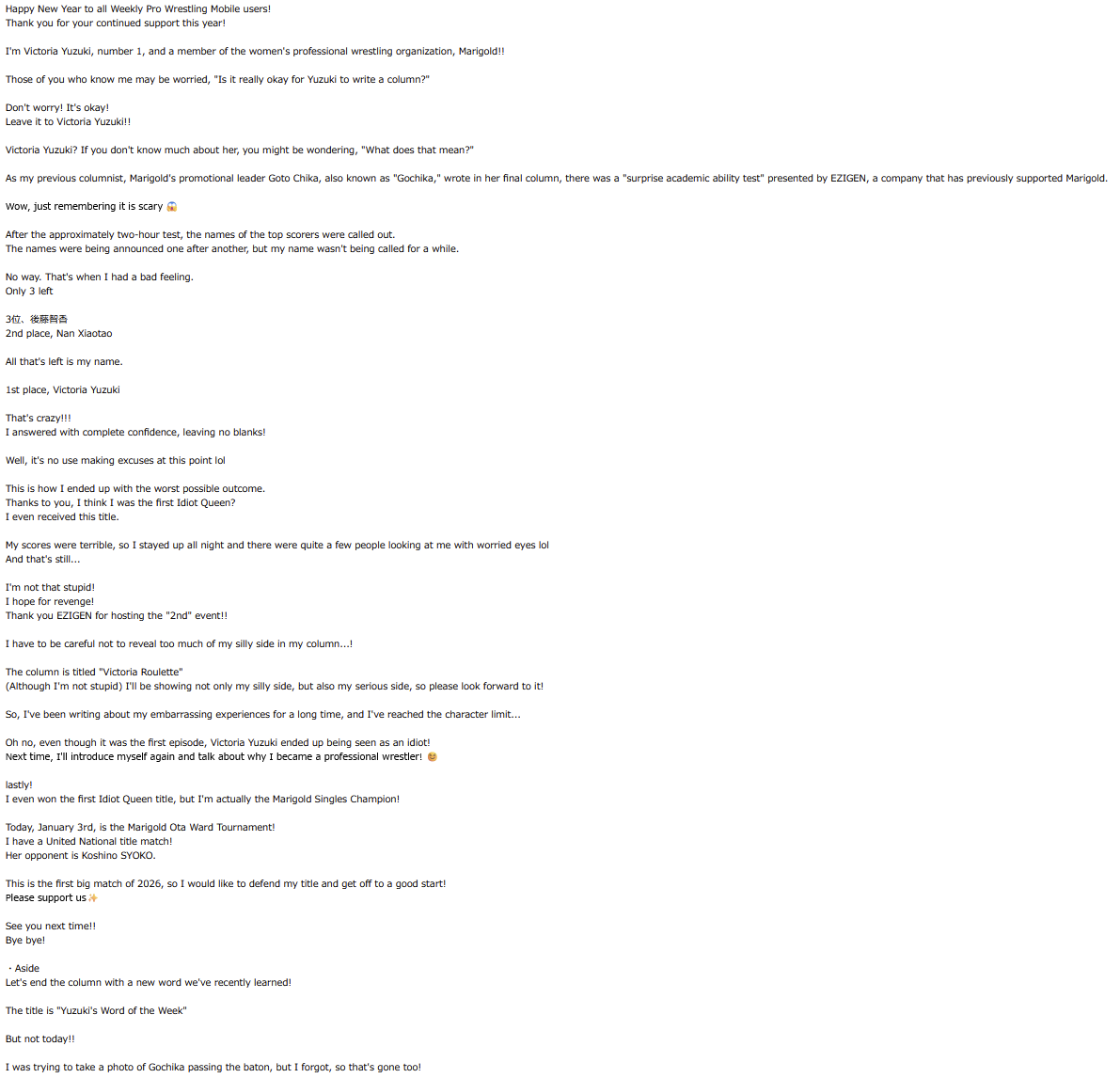 >[Weekly Pro Wrestling Mobile] Victoria Yuzuki's Saturday Column "Victoria Roulette" First Installment Updated ~I Can't End It Just Like This, Still Being a Fool!>#週プロモバイル #ビクトリア弓月 #pw_mghttps://x.com/shupromobile/status/2007104891815080034