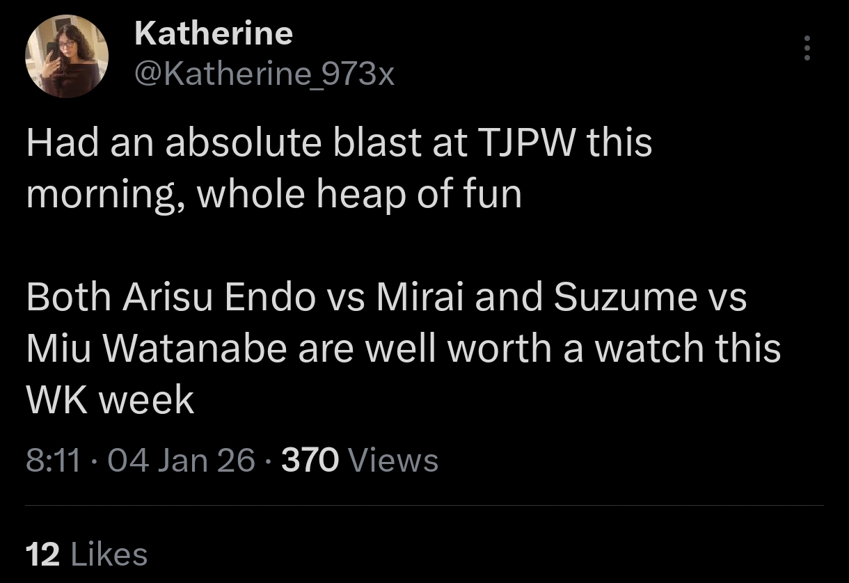 I rewatched the main event. Suzume has definitely leveled up. If it does end up being Mirai vs Suzume at GP, I'm expecting a great match (and for Suzume to go over)