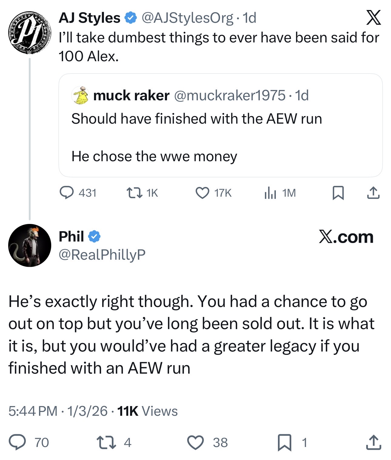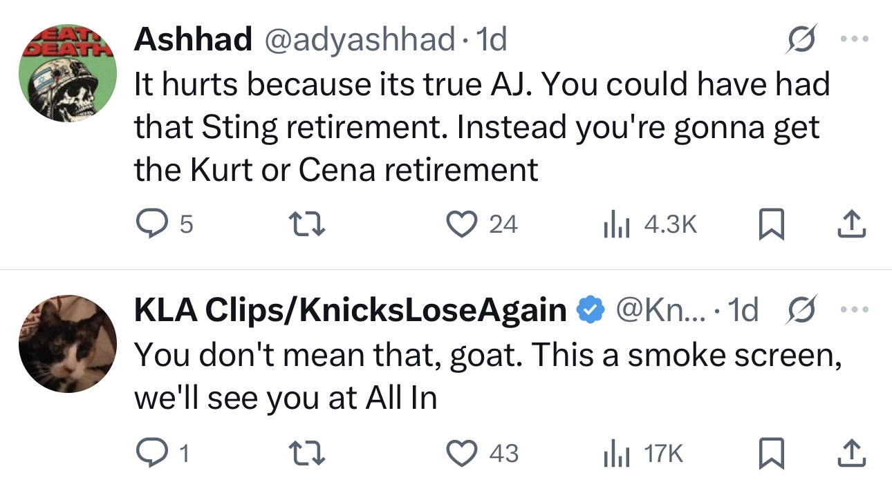 I wish I could make all AEW fans disappear so WWE and NJPW bros could just talk wrestling and be friends without AEW fans coming in and being mean to everyone.
