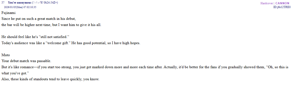 Can't tell if this is some fan LARPing or transcribing what Fujinami and Mutoh said, but it's in-character enough that I'm posting it