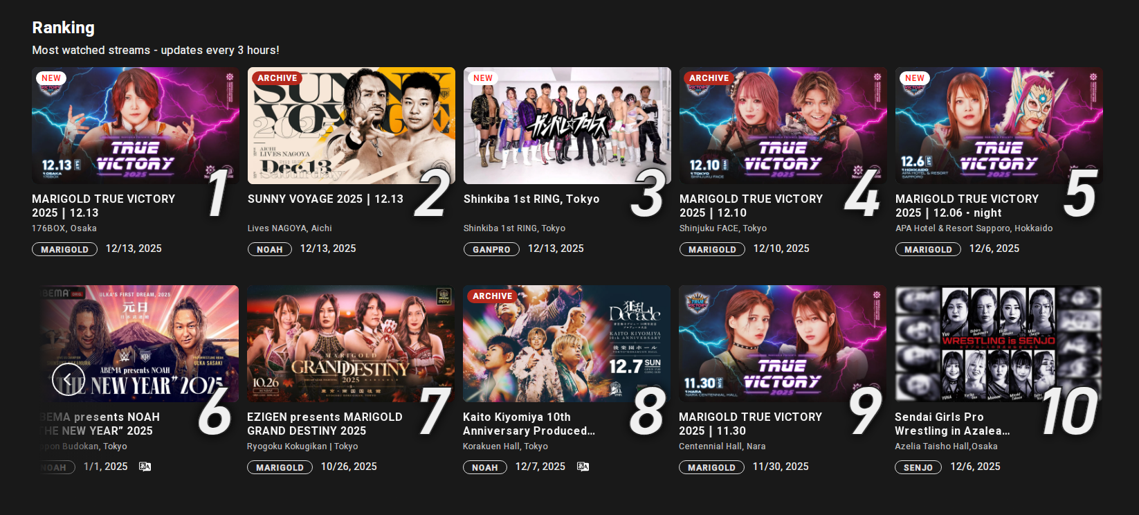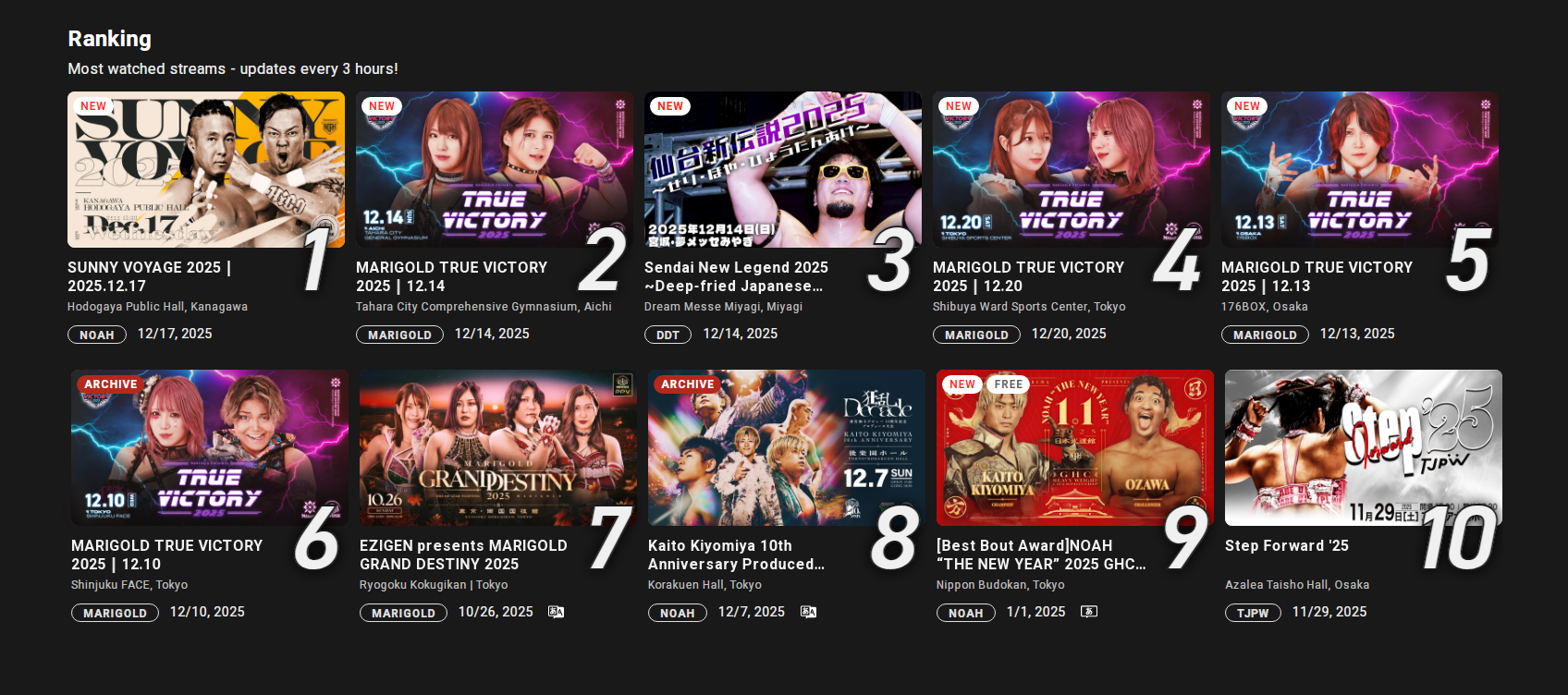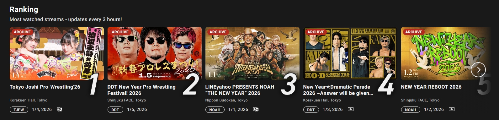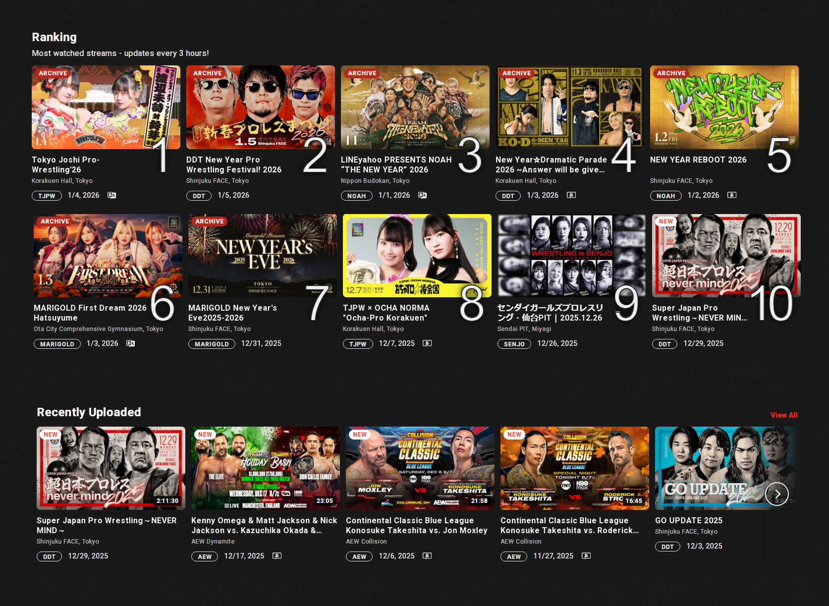 updates every three hours and comparing a show from 1.4 to a show from 1.1 is just stupid. NOAH is trash, DDT ain't much better. TJPW is the lifeblood of WrestleUniverse, but this isn't any sort of proof of numbers.