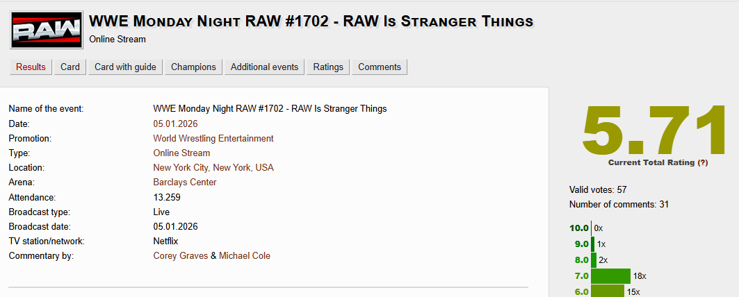 Raw was #1 on Netflix and had 14k in attendance