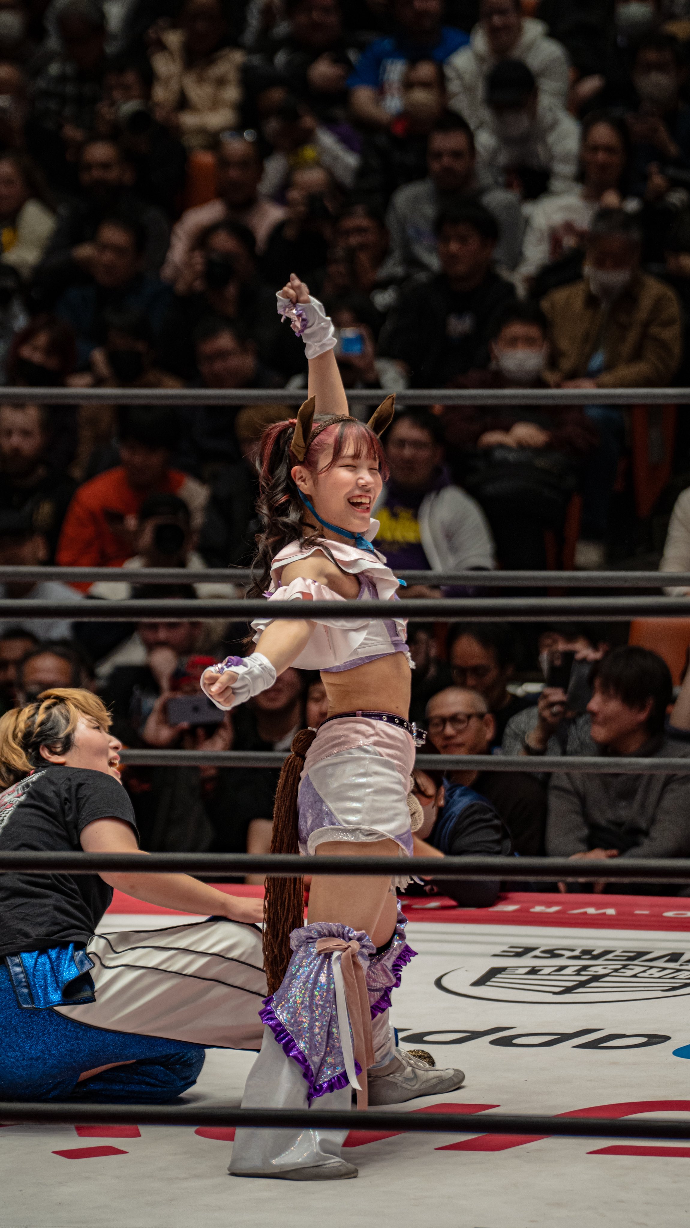 >>19644403>The inaugural generation—Miyu Yamashita, Shoko Nakajima, Rika Tatsumi, and others—were still young in terms of career, and the roster had only just exceeded ten wrestlers. This was still an era when a Shinjuku FACE show counted as a big event, so running Korakuen Hall was a bold and risky challenge with no guarantee of success.>However, aside from the front row seats (¥10,000), all tickets were priced at an astonishingly low ¥2,000. Even though the north-side seating was closed off, the show drew a full house of 914 fans, an impressive result. In the main event, Yamashita defeated Nakajima in a decisive match to become the inaugural Princess of Princess Champion. The opening match also featured the debut of Yuu, who maintained an undefeated streak and would go on to defeat Yamashita in September to become the second PoP Champion.>After that, as the roster grew and the promotion’s depth increased—along with the tailwind of rising overseas fans whose main purpose was attending the January 4 Tokyo Dome show—attendance continued to grow year by year, except for 2021 and 2022, when capacity restrictions were in place due to COVID-19. This year’s January 4 Korakuen event used the full seating configuration, sold out in advance, and even added standing-room tickets, drawing a packed, sold-out crowd of over 1,564.>The main event was the PoP Championship match, with Suzume challenging Miu Watanabe. Incidentally, Watanabe herself debuted at the January 4 Korakuen show back in 2018. In the 11-year history of the January 4 Korakuen events, this was the first time the main event featured a title match between homegrown Tokyo Joshi wrestlers with no involvement from the inaugural generation. Neither the semi-main tag team championship nor the International Championship match before it included any wrestlers with more than ten years of career experience.