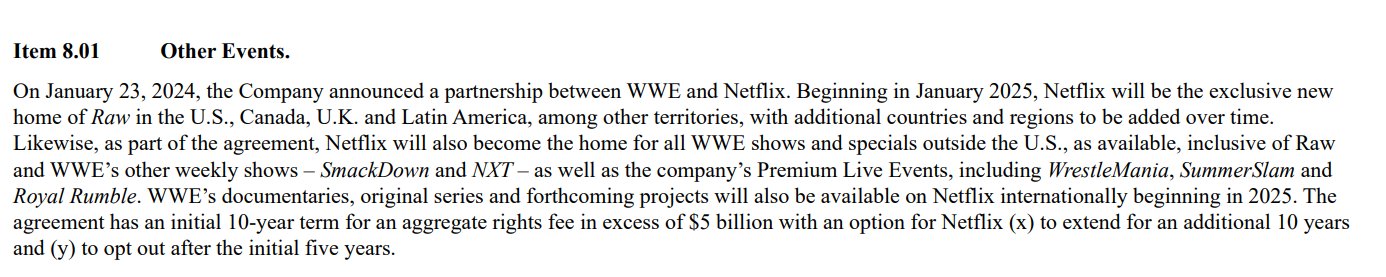>>19643510See a psychiatrist. Just because you keep insisting Netflix is disappointed with WWE doesn't make it true no matter how many times you keep repeating it. They just signed a brand new, multimillion dollar deal for the rights to stream WWE's back catalog in North America on top of the previously existing deal for Raw, and the International streaming rights.If Netflix wasn't happy with WWE, they would have let that back catalog go to Paramount Plus or some other streamer.
