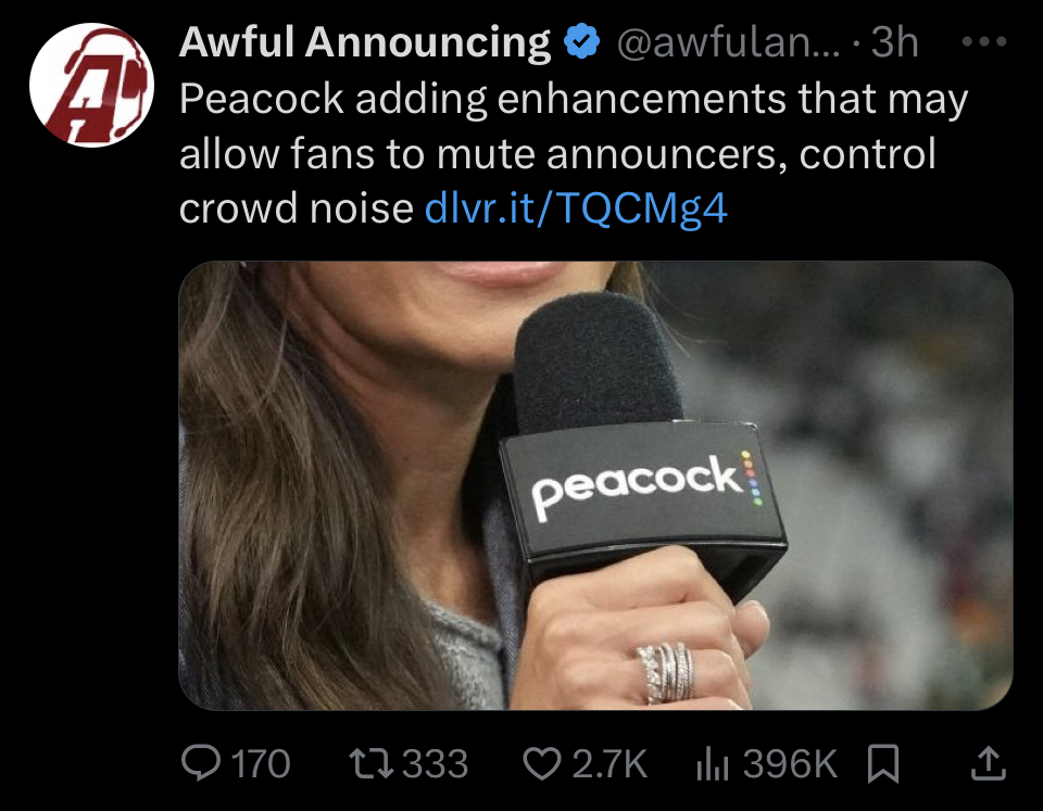 Could Netflix possibly implement this for WWE? Watching Wrestlemania with just arena audio would be kino
