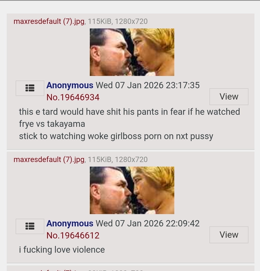 this e tard would have shit his pants in fear if he watched frye vs takayamastick to watching woke girlboss porn on nxt pussy