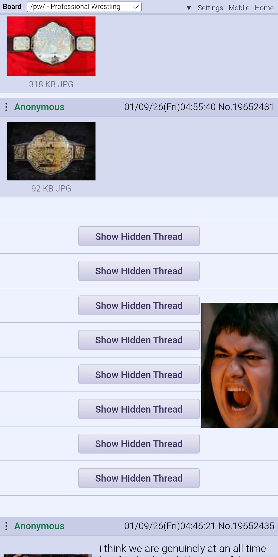 >>19652534>He hides threadsIt's shoot over for the singular AEW pedo