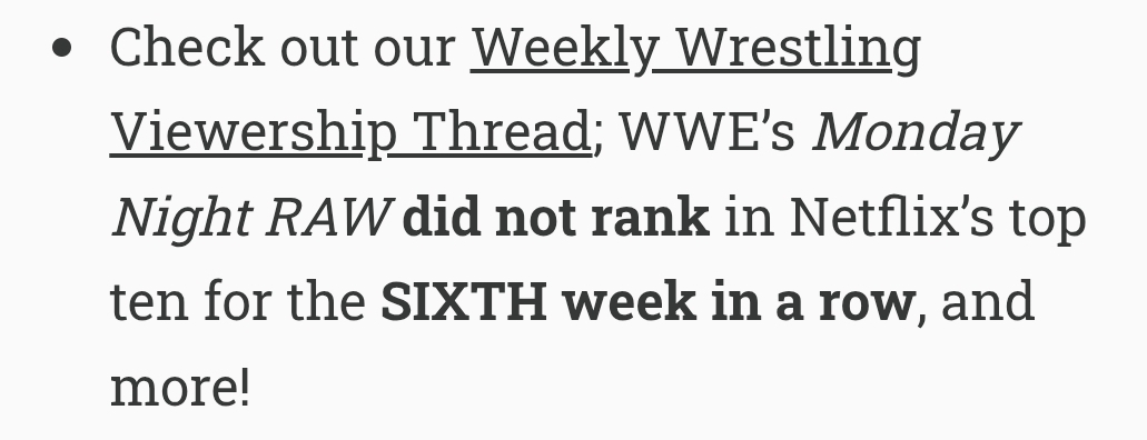 >Raw FAILS to reach the top 10 Netflix rankings for the SIXTH week in a rowOofhttps://streamscoop.substack.com/p/stranger-things-finale-scores-313m
