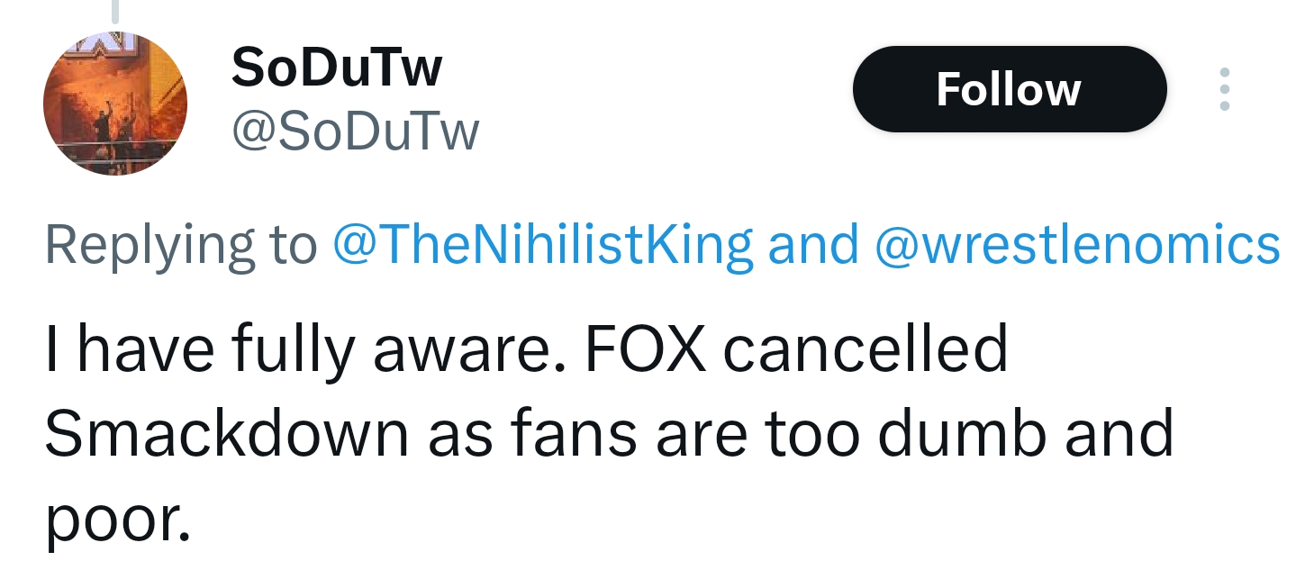 I think I found fatass's burner on X. WWE's resident street shitter posted the ratings and fatass is spamming the same "max numbers are included" on X like he is in this thread lol