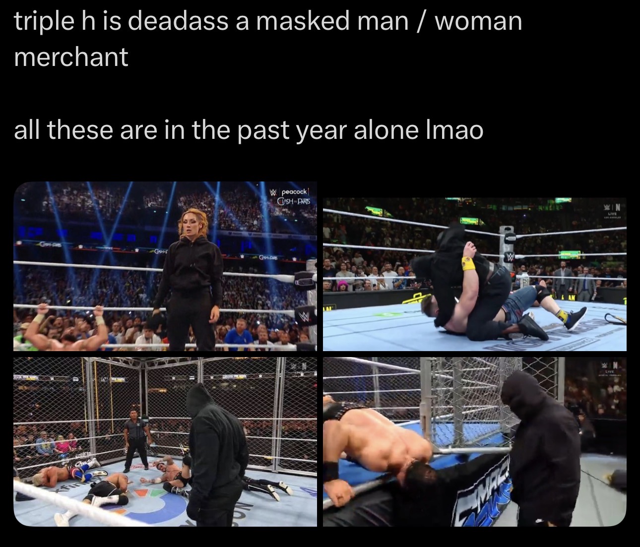 >>19660118one more and you can start referring to the WWE as masked man slop